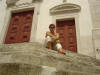Liliana, ...wie immer am Elevador de Santa Justa. Heute früh ist die Stadt