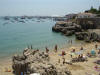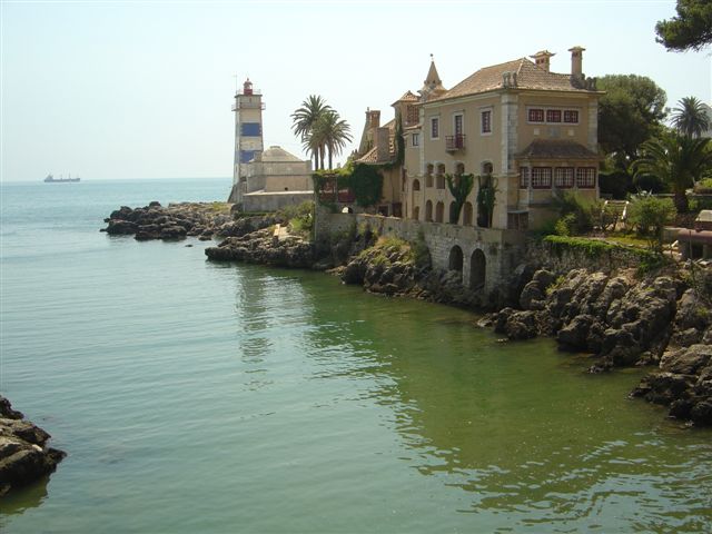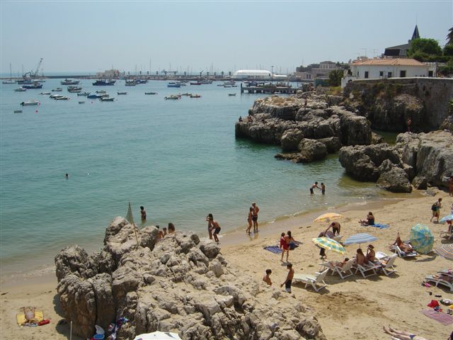 Die S-Bahn bringt uns in knapp einer halben Stunde hinaus zum Atlantik nach Cascais. Hier im mondänen Badeort Lissabons sieht man viele vornehme Villen. Wir schlendern bis hinauf zum Castelo und wieder zurück. Da es inzwischen ordentlich warm geworden ist, testen wir den Strand von Cascais. In Sachen Wasserqualität und Strandfeeling sollte man allerdings keine allzu hohen Ansprüche stellen. Sicher waren wir da von der Algarve doch etwas verwöhnt. Die S-Bahn bringt uns wieder zurück bis zur Endstation am Cais do Sodré, wo wir wieder auf die Fähre wechseln und hinüber nach Casilhas schippern. Hier speißen wir günstig und äußerst lecker Espetada de Lulas und Arroz de Marisco (Tintenfischspieß und Meeresfrüchtereis). Nach dem ausgiebigen Essen und dem Genuss von genügend Vinho Verde geht's mit der Fähre wieder zurück auf die andere Seite. Hier bummeln wir noch etwas durch die Gassen und legen an der Praca do Figuera nochmals eine kurze Pause ein. Hier im Cafe Suiza sitzen wir outdoor mit Panoramablick auf den Platz und das Castelo Sao Jorge. Als die abendlichen Lichter angehen und viele Fassaden beleuchtet werden, ist die Stimmung perfekt. Zur Rückfahrt zum Hotel nutzen wir heute wieder die Electricio Nr.28. |