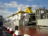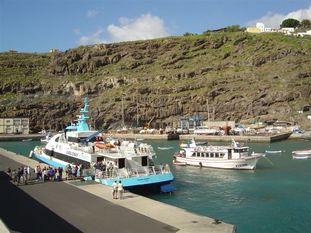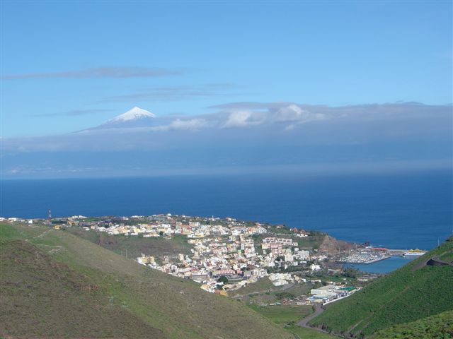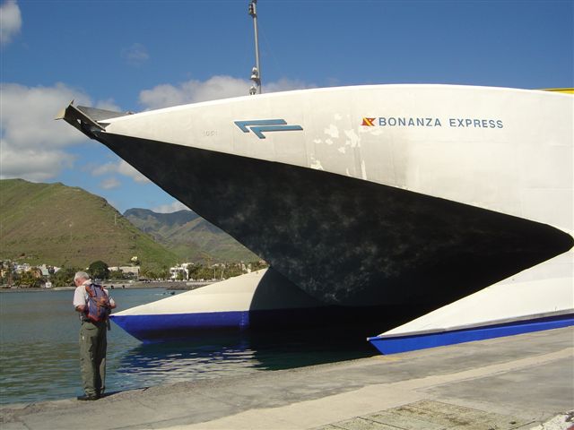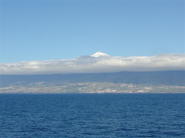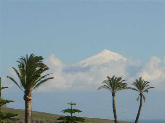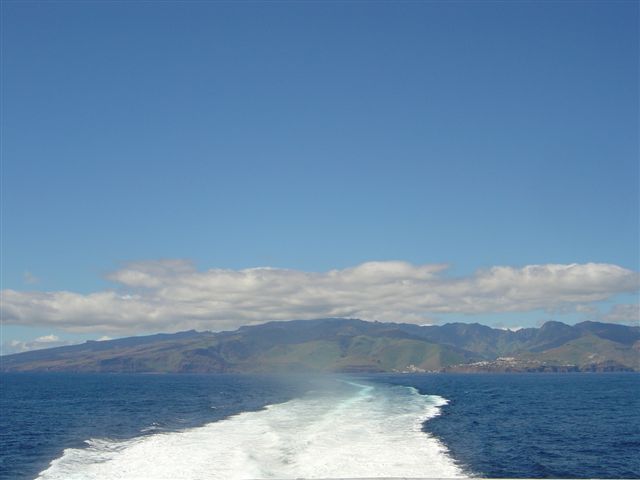 | Schon am Freitagabend fahren wir im größten Schneegestöber in Richtung Nürnberg zum Flughafen. Diesen erreichen wir dann auch überpünktlich. Gegen 4:45 Uhr startet dann unser AIRBERLIN-Flieger und bringt uns nach Tenerife-SUR. Beim Landeanflug sehen wir den Teide über und über mit Schnee bedeckt. Dieses Jahr ist selbst die Südseite komplett weiß. Schnell nehmen wir unsere Koffer in Empfang und der Shuttle-Bus bringt uns nach kurzer Fahrt nach Los Cristianos zum Fährhafen. Hier wartet schon der neue Trimaran von Fred Olsen auf uns. Schnell die Koffer in die Gepäckboxen verstaut und rauf auf die Fähre. Pünktlich um 09:30 Uhr gehts nun endlich los in Richtung La Gomera. Während wir auf Tenerife mit Sonnenschein und lauen 22°C empfangen wurden, zieht sich der Himmel zu und als wir in San Sebastian landen, regnet es. | |