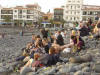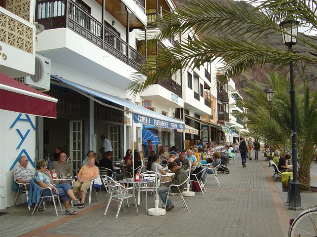 | Heute schlafen wir paar Minuten länger, denn wir planen keine größere Wanderung sondern nur einen Spaziergang zur Playa Inglés. Heute Morgen ist es zwar etwas wolkig aber windstill und so sehr angenehm. Heute sehen wir die Nachbarinseln El Hierro und La Palma extrem deutlich. Man kann einzelne Häuser und die Barrancos deutlich erkennen. Also beziehen wir unser Domizil am Strand und lassen es uns gutgehen. Am Abend muss es nochmals die Tambara-Bar sein und traditionsgemäß wechseln wir dem dem Sundowner ins "Abisinia" , um ein letztes Mal die Chocos a la Plancha und das Filete de Atun zu speisen. | |