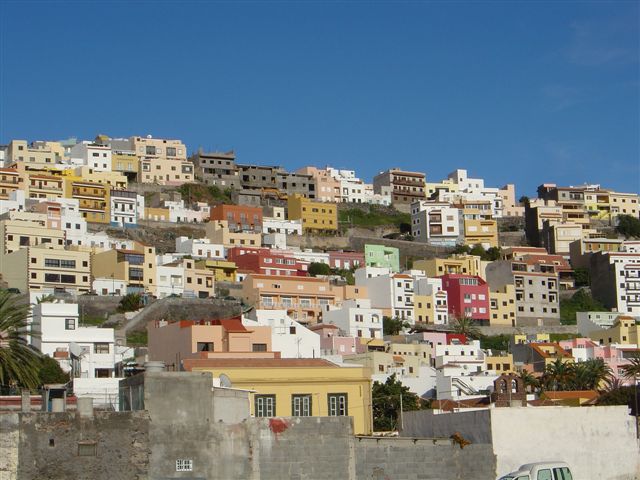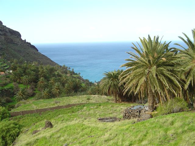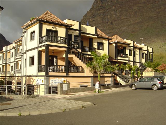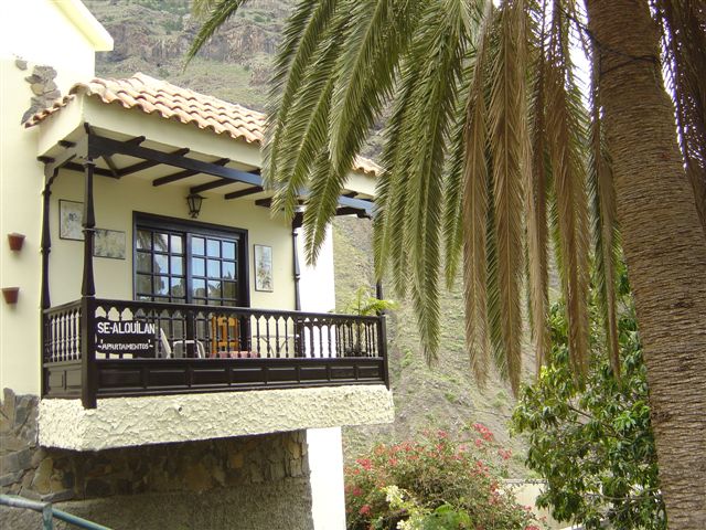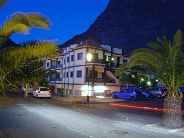 | Der Bus bringt uns in ca. 90-minütiger Fahrt über die Insel ins Valle Gran Rey. Hier ist es erwartungsgemäß trocken und angenehm mild. Wir checken in unser Zimmer im Residencial El Conde in La Puntilla ein. Wir haben großes Glück und erwischen ein Zimmer im oberen Stock mit Meerblick. | |