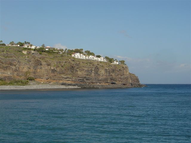 | Nach dem Outdoor-Frühstück auf Balkonien planen wir heute einen Trip nach Playa Santiago. Dazu fahren wir mit der 10:45 Uhr-Fähre der Garajonay-Expres in einer knappen halben Stunde an den Südzipfel der Insel. Hier ist es noch sonniger als im Valle aber auch etwas windig. Wir bummeln durch den Ort und steigen einen Pfad hinauf Richtung Hotel Jardin Tecina. Wir biegen noch die Straße hinter dem Hotel ab, um schon mal einen ersten Blick auf unseren Lieblingsstrand auf La Gomera zu werfen - die Playa del Medio. Wir schaffen es zwar nicht per Pedes dahin zu kommen aber wir werden durch ein phantastisches Teide-Panorma entschädigt. Auch müssen wir sehen, dass die Golfer nun auch La Gomera erobert haben und hier im Jardin Tecina die gehobene Gesellschaft absteigt. Auch der Anteil an Briten erscheint hier besonders hoch zu sein, die man ja sonst auf der Insel kaum wahrnimmt. Gegen 15:35 Uhr bringt uns die Garajonay-Expres dann wieder zurück nach Vueltas. Am Abend übernehmen wir dann noch unseren Mietwagen. Diesen haben wir per Internet über das Reisebüro La Paloma in Vueltas gebucht (www.gomera.de). Das hat alles prima geklappt, pünktlich zur vereinbarten Zeit konnten wir den Wagen, einen Seat Ibiza, von La Rueda übernehmen. | |