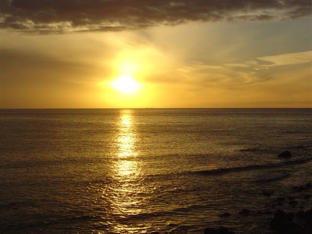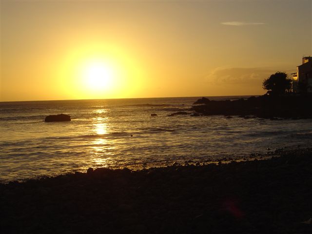 | Auf der Fahrt zurück ins Valle erleben wir wieder die tollsten Temperaturkapriolen. Wir starten im Süden bei lauen 22°C, erleben in Chipude eisige 6°C und im Valle ist es wieder herrlich sonnig bei milden 21°C. So zelebrieren wir heute wieder bei Maria in La Playa einen Sundowner um, nachdem sich die Sonne zurückgezogen hat, ins Restaurant "Paraiso" zu ziehen. Dort steht neben Filete de Atun, Chocos a la plancha und einem Potaje de Berros (Kressesuppe) als Nachspeise die Leche Asada (gebackene Milch mit Palmhonig) auf dem Speiseplan. | |