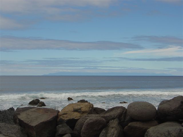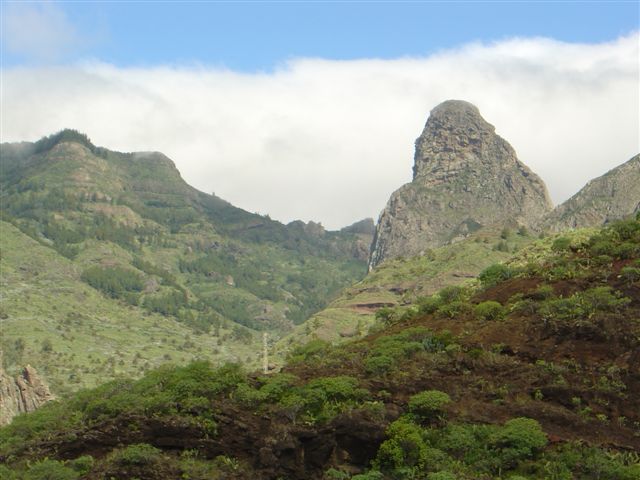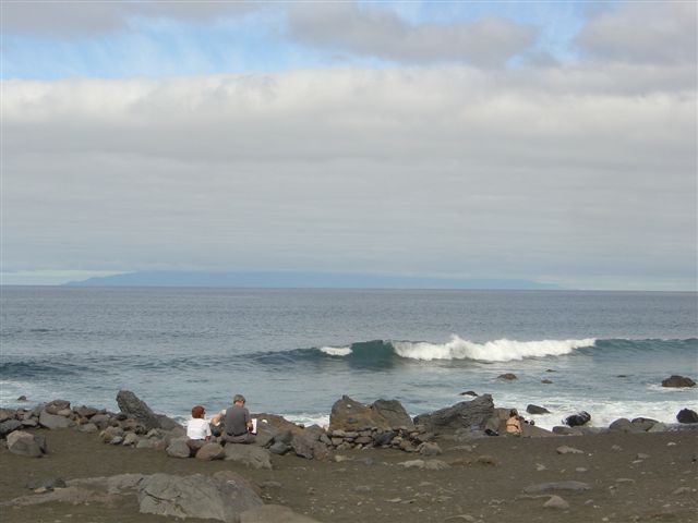 | Heute ist "Ruhetag". Nachdem wir die letzten Tage durchgehend Wandern waren, ist heute mal Relaxen an der Playa del Medio angesagt. Kaum erreichen wir den Strand, ziehen auch schon Wolken auf. Es ist zwar angenehm mild aber die Sonne fehlt. Als wir uns gerade zum Aufbrechen entschließen, hat die Sonne ein Einsehen und zeigt sich nunmehr von ihrer besten Seite. Plötzlich keine Wolke mehr am Himmel und bestes Badewetter. Logisch bleiben wir bis zum Nachmittag und lassen es uns gut gehen. Gegen 15:30 Uhr brechen wir dann in Richtung San Sebastian auf, um unsere Vorräte etwas aufzufrischen. Dabei haben wir nochmals einen phantastischen Panoramablick hinüber nach Tenerife und den Teide. Nach dem Einkauf fahren wir, nach einen kurzen Fotostopp am Roque Agando, wieder über die wolkenverhangene Carretera Dorsal zurück ins Valle, wo wir auch heute wieder im "Abisinia" zu Abend essen. | |