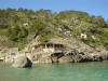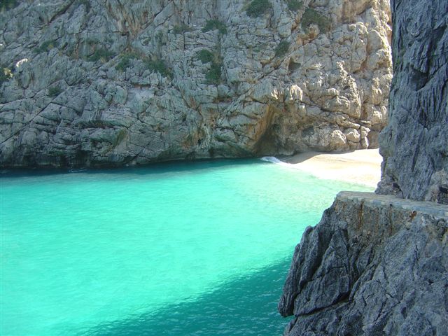 | Heute fahren wir entlang der Nordküste in Richtung Arta. Hier überragt die alte Festung den Ort. Kurz hinter der Ortlage zweigt eine (hier noch perfekt asphaltierte) Straße zur Cala Torta ab. Diese windet sich kilometerlang durch das Hinterland zur Küste zu. Dabei fährt man durch einsame Gegenden mit schönen Fincas und uralten Olivenbäumen. Plötzlich gabelt sich die Straße (links zweigt eine Straße zur Cala Mitjana ab), und was noch viel schlimmer ist, der Asphalt hört auf. Wir versuchen beide Alternativen doch in beiden Fällen brechen wir ab, da beide Pisten für den Berlingo unpassierbar sind. Also fahren wir nach Arta zurück, um von dort weiter Richtung Cala Ratjada zu fahren. Hier parken wir an der Cala Agulla und brechen zu unseren Wanderung zur Cala Mesquida auf. Zuerst führt uns diese am Strand der Cala Agulla entlang und kurze Zeit später erreichen wir die Nachbarbucht, die Cala Molto. Kurze Zeit später gabelt sich der Weg und wir wählen die Alternative über den Talaja de Jaumell (271m), einem alten Wachturm hoch über Cala Ratjada. Nach dem Aufstieg genießen wir das Klasse Panorama und sehen unser Etappenziel, die Cala Mesqida, schon vor uns liegen. Auf recht steilen Hang steigen wir zur Bucht hinunter. Dort nehmen wir ein kühles Bad und genießen die Sonne. Auch hier haben alle Hotels noch Winterpause. Zurück nehmen wir den "normalen" Weg und erreichen nach ca. 45 Minuten wieder unser Auto. Nach Duschstopp im Quartier fahren wir am Abend noch nach Port de Pollenca, wo wir Essen gehen. Anschließend halten wir auf unserem Rückweg noch an der Altstadt von Alcudia, wo wir durch die Gassen der Altstadt flanieren. | |