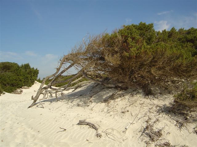 | Wieder führt uns die Fahrt in den Südosten der Insel. Neben den Bergregionen der Tramuntana hat es uns diese Ecke der Insel besonders angetan, da es hier noch recht ursprünglich ist und man Mallorca noch in seiner nicht ausschließlich touristisch geprägten Form erleben kann. Hier findet man außer an der Ostküste keine Riesenhotels sondern eher Appartements und Fincas, wo der sog. Agrotourismo angeboten wird. Nach ca. 1 Stunde Fahrt erreichen wir Campos. Dort bummeln wir durch die Gassen und wollen zum heute dort stattfindenden Markt. Diesen entdecken wir jedoch nicht und so fahren wir nach unserem Ortsrundgang gleich weiter Richtung Colonia Sant Jordi. Bevor wir den Ort erreichen, biegen wir rechts in Richtung Es Trenc ab. Kurz nach dem Verlassen der Hauptstraße stehen wir vor großen weißen Hügeln, das sind die Salzberge der Salines de Llevant. Im Hofladen fragen wir nach Flor de Sal aber leider ist dieses erst ab ca. Juni zu bekommen. Nun ist der Weg zur Platja Es Trenc nicht mehr weit. Wir erreichen den Parkplatz, wo wir unsere 5,-€ Parkentgelt löhnen und laufen die wenigen Meter bis zum Strand weiter. Hier werden wir von riesigen Seegrasbergen empfangen. Diese natürliche Erscheinung kennen wir bereits von Formentera und leider trüben diese Anschwemmungen ziemlich die Badefreude. Mit Beginn der Saison werden diese sicher entfernt, so dass das türkisblaue Wasser wieder richtig zur Geltung kommt. Wir finden dann doch ein freies Stück ohne Seegras und platzieren uns dort in den Dünen. Als für eine kurze Zeit Wolken aufziehen wollen wir schon aufbrechen, doch das Wetter zeigt sich auch heute einsichtig und kurze Zeit später strahlt die Sonnen wieder und zeigt sich auch heute von ihrer besten Seite. Am späten Nachmittag fahren wir wieder zurück. Im Mercadona von C'an Picafort erstehen wir noch die Zutaten (frisches Lamm) für unseren Grillabend mit den wir den heutigen Tag ausklingen lassen. | |