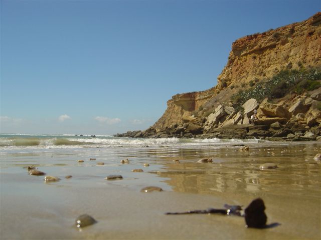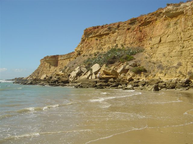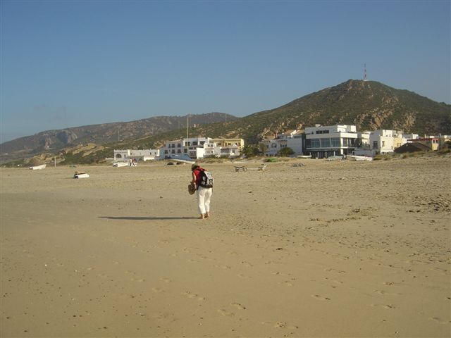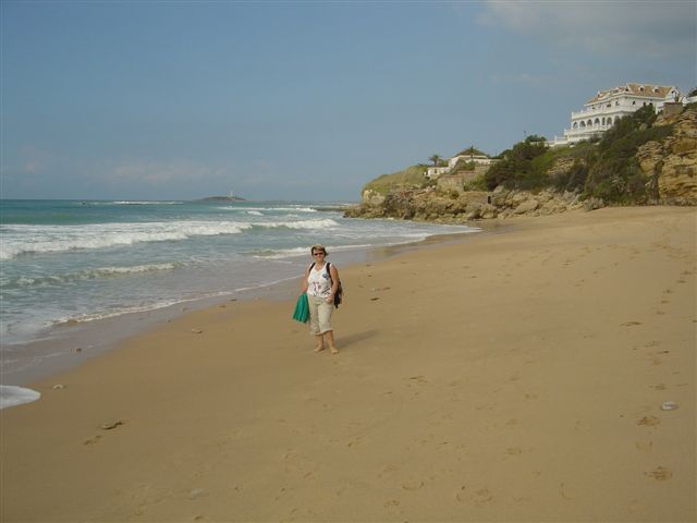 | Heute Morgen fahren wir via Vejer, Canos de Meca und Barbate nach Zahara de los Atunes. Hier erwarten uns endlose Sandstrände, so dass wir uns zu einer kurzen Strandwanderung entschließen. Der Strand ist hier mehrere 100 Meter breit und kilometerlang, so dass ein Gefühl von unendlicher Weite sich auftut. Ähnliche Atmosphäre erleben wir an unserem nächsten Zwischenstopp, in El Palmar. Auch hier lädt der Strand zum Bummeln ein. Die ohnehin wenigen Gäste verlieren sich in der Weite des Strandes. Nach einem Bummel in El Palmar fahren wir nur wenige Kilometer weiter nach Conil, wo wir die Buchten hinter dem Leuchtturm von Roche suchen und auch finden. Wir entscheiden uns für eine kleine Sandbucht, welche von Felsen umrahmt wird. Diese haben wir (fast, ...nur ein Angler und zwei weitere Badegäste sind noch da) für uns alleine haben. Nach dem Baden fahren wir über Roche und Novo Sancti Petri nach Chiclana, wo wir einen Tunfisch erstehen, welchen wir nach Rückkehr in der Casa Blanca auf dem Grill zubereiten. Einfach lecker. | ||