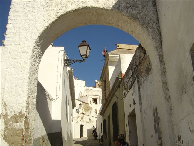 | Auch heute Morgen klingelt der Wecker um 07:30 Uhr und draußen ist es stockdunkel. Trotzdem bereiten wir wieder unser Outdoor-Frühstück vor, was wir in den ersten Sonnenstrahlen des Tages genießen. Danach starten wir via Vejer in Richtung Medina Sidonia, einem sog. "weißen Dorf" im Hinterland Andalusiens. Dieser kleine Ort ist wie viele hier auf einer Anhöhe erbaut und wird von einer alten maurischen Festung bekrönt. Wir bummeln in Ruhe durch den Ort, besuchen die Kirche und die Ruine der Festung und erleben hier einen Blick über das Land. Nachdem wir noch über die örtliche Plaza Espana (...es gibt kaum einen Ort, ohne einen Platz dieses Namens...) gebummelt sind und paar süße Leckerein erstanden haben, fahren wir über die A-381 via Alcala weiter nach Norden. Über den Paß Puerto de Galis bei Ubrique fahren wir an den südlichen Ausläufern der Sierra de Grazalema vorbei nach Jimena de la Frontera. Hier steht wieder ein Ortsbummel an, auch hier wieder ein weißes Dorf mit maurischer Festung. Danach wenden wir uns wieder in Richtung Süden, wo wir noch in Castelar de la Frontera Station machen. Hier werden gerade alle Häuser wieder restauriert und der Ort ist ein richtiges Schmuckkästchen geworden. In der Ferne sieht man schon den Felsen von Gibraltar und das gegenüberliegende afrikanische Festland. Über die A-369 fahren wir anschließend über San Roque nach Algeciras, wo wir im "Eroski" erstmal Proviant aufnehmen. Nach der ca. 350 Km-Runde müssen wir auch an diesem Tage uns nochmals zu Wasser lassen, was wir am Dünenstrand von Bolonia tun. Neben einem tollen Sandstrand mit Düne gibt es hier auch eine alte römische Stadt namens Baelo Claudia zu bestaunen. Nachdem wir dann wieder zurück im Quartier sind nehmen wir wie immer die Terrasse in Beschlag und genießen die untergehende Sonne. | ||