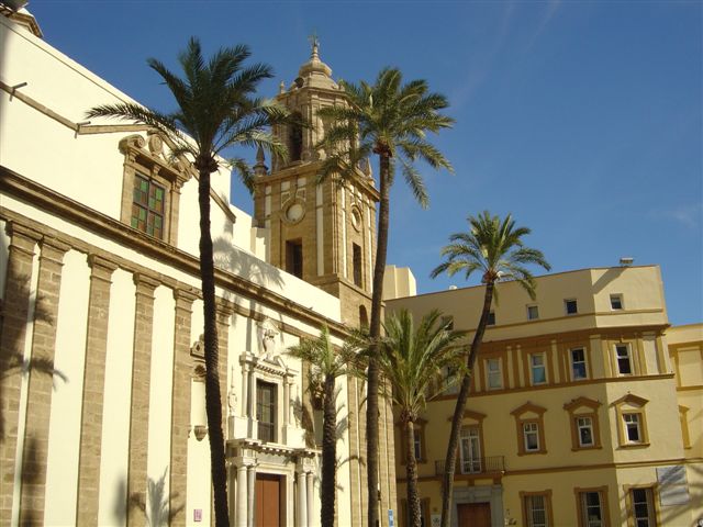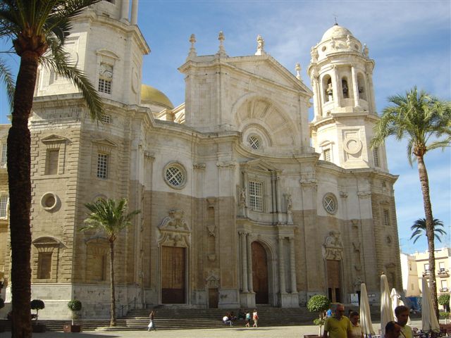 | Als wir heute früh erwachen, ziehen dickere Wolken am Himmel. Das hält uns trotzdem nicht vom Outdoor-Frühstück ab. Als wir dann in Richtung Cadiz starten, fängt es überdies noch ziemlich heftig an zu regnen. Doch der Regen verzieht sich während der Fahrt und so kommen wir bei herrlichen Sonnenschein in der ältesten Stadt Westeuropas - in Cadiz - an. Die Tiefgaragenempfehlung aus dem Reiseführer war zwar gut zu finden doch leider prangte uns ein Schild "Completo" entgegen, so dass wir unfreiwillig eine Stadtrundfahrt auf der Suche nach einer Parkalternative unternehmen müssen. Die finden wir dann recht zentral in einer Tiefgarage unter der Plaza Antonio. Wir bummeln bis nach dem Mittag durch die Gassen und Straßen der Stadt. Dabei ist die Kathedrale und der davor liegende Platz besonders sehenswert. Leider sieht man der Kathedrale an, dass sie schon einige Jahre auf dem Buckel hat; die salzige Luft setzt dem Sandstein mächtig zu. Nach unserem Bummel fahren wir wieder retour und versuchen es heute wieder an unserer Bucht beim Cabo Roche, doch auch heute ist hier kein Baden möglich, so dass wir wieder an die Cala Aceite ausweichen. Nach einer ausreichenden Dosis Sonne und der notwendigen Abkühlung im Atlantik fahren wir im späten Nachmittag nochmals nach Conil. Hier bummeln wir noch etwas am langen Strand entlang und nehmen einen kurzen Drink im Chiringuito "El Huerto". | ||