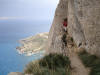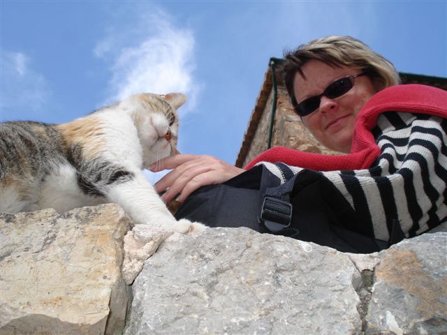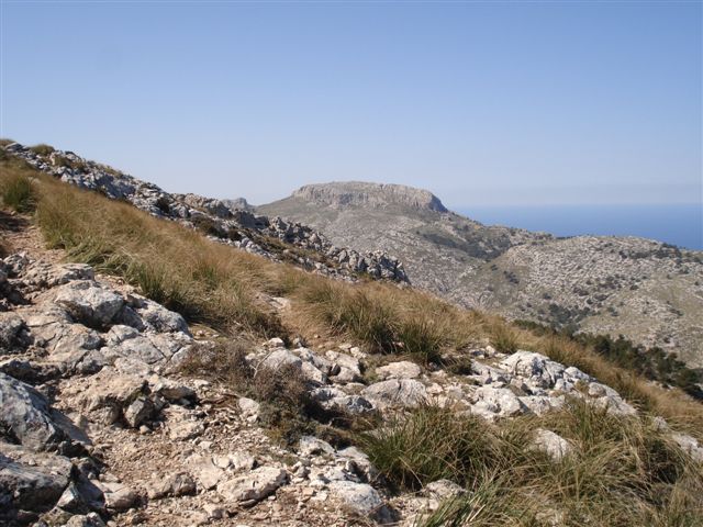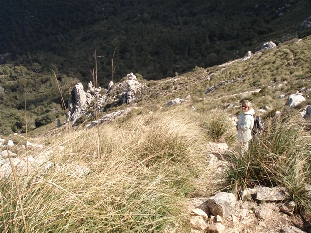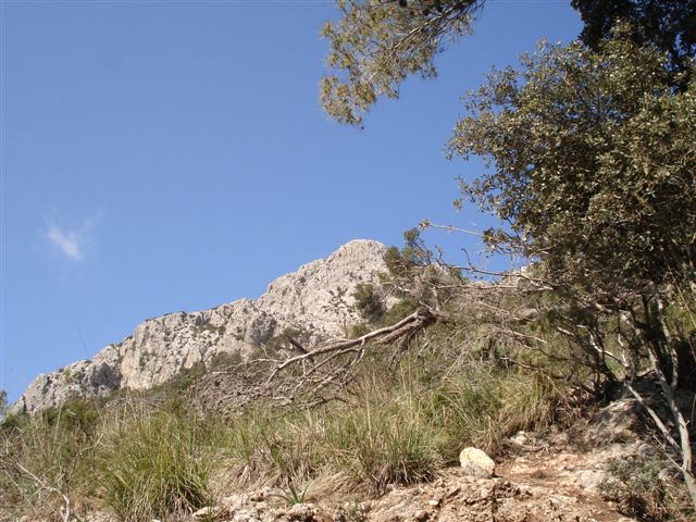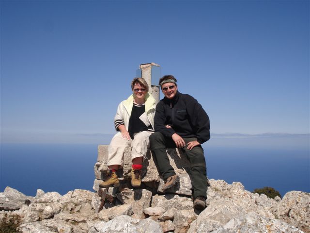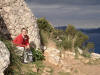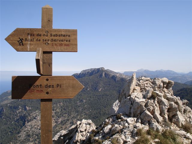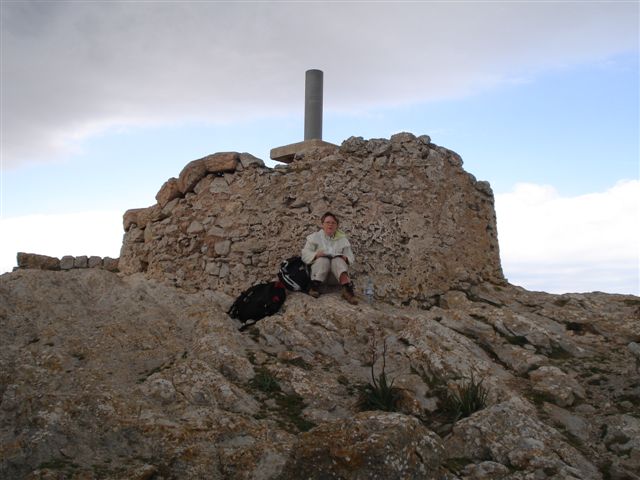 | Heute sieht das Wetter deutlich besser aus als an den vorangegangenen Tagen. Also entschließen wir uns etwas höher hinauf zu steigen. Ziel unserer heutigen Tour ist der Galatzo (1026m), der höchste Berg im Südwesten Mallorcas. Über die Autobahn und die Via Cintura fahren wir nach Puigpuniyent zum Startpunkt an den Font des Pi. Auch hier zeichnet sich der Rother-Wanderführer nicht gerade durch einen hohen Detailgrad bei der Anfahrtsbeschreibung aus, doch wir finden den Startpunkt schließlich, auch wenn wir diesen wegen Unbefahrbarkeit der Straße nicht ganz mit dem Auto erreichen - aber wir wollen ja eh Wandern. In ca. 20 Minuten steigen wir zur kleinen Passhöhe Coll d'es Carnisseret (698m) auf. Ab hier nimmt die Wanderung dann teilweise einen alpinen Charakter an. Nach einigen Gekraxel durch teilweise noch verschneite Felsen erreichen wir den Gipfel. Hier oben hat man ein herrliches Panorama bis Palma, Andratx und die gesamte Tramuntana. Nach dem Gipfelbiwak geht es auf gleicher Strecke zurück zu den Font des Pi. Nach der Bergtour ist uns nach Strand und Sonne, so dass wir uns spontan zu einer Fahrt quer über die Insel zur Cala Amonia entschließen. Via Palma und Llucmajor erreichen wir die kleine Bucht im Südosten. Das Wetter meint es gut mit uns und wir genießen die Sonne und wagen uns auch ins ca. 15°C kalte Mittelmeer. Nach dem Besuch an unserer "Traumbucht" machen wir dann noch einen kleinen Abstecher zur Cala Llombards und überraschen Ines' Eltern nochmals kurz in Cala d'Or, bevor wir dann wieder die Rückfahrt nach Maria de la Salut antreten. | |||
