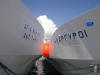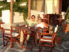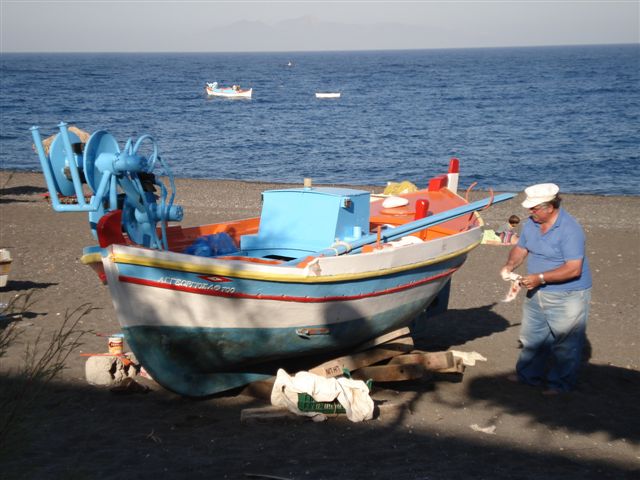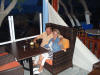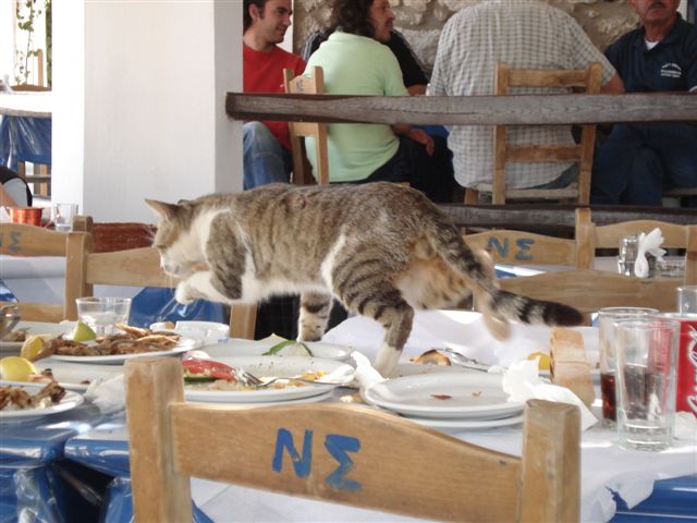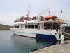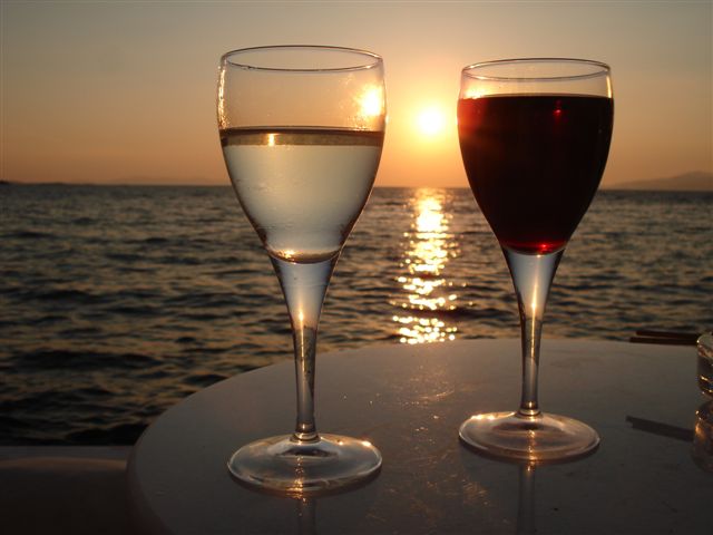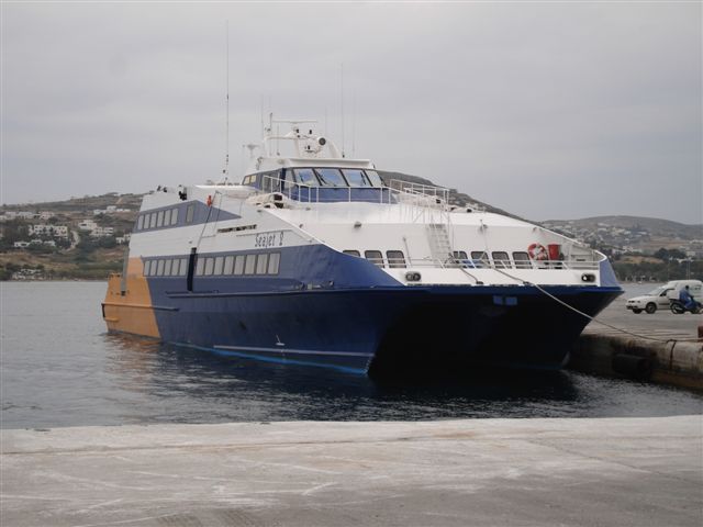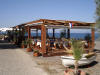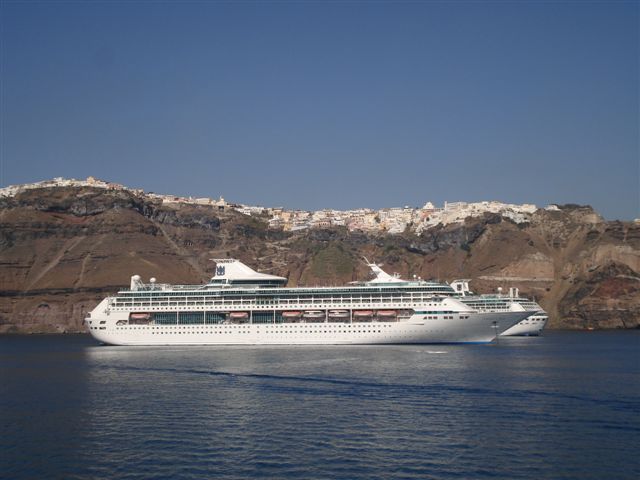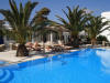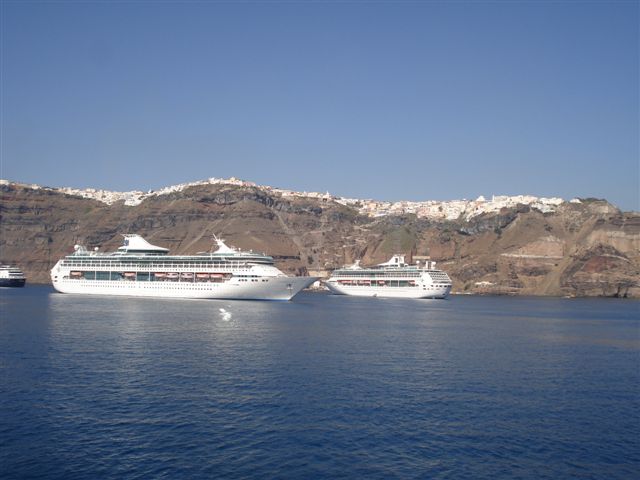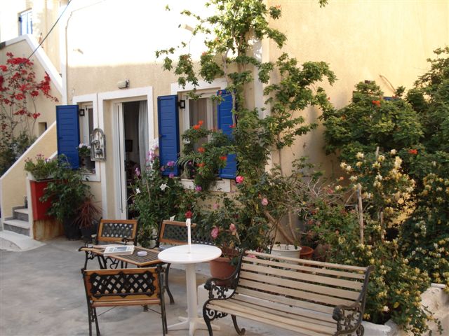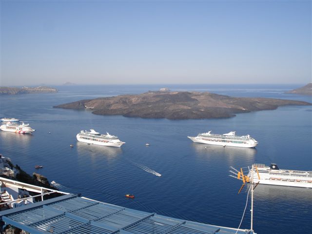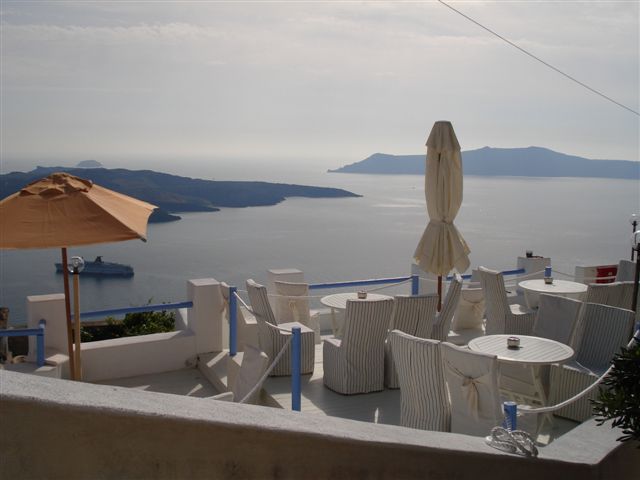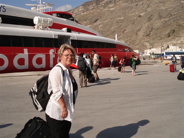 | Im Gegensatz zu gestern ist heute strahlend blauer Himmel. Also packen wir schnell unsere Sachen zusammen und genießen noch bis zum Mittag die Sonnenstrahlen am Hotelpool. Dort werden wir gegen 13:00 Uhr abgeholt und mit unseren Koffern hinunter zum Hafen gebracht. Nach einigem Warten kommt unser Schnellboot, die FlyingCat 4 an, und bringt uns in ca. 3 Stunden mit Zwischenstopps in Paros und Ios wieder zurück nach Santorin. Im Athinios-Hafen werden wir abgeholt und dann wird es schnell zur Gewissheit - wir residieren wieder in unserer Edelabsteige, dem "Makis". Da wir aber schon damit gerechnet hatten, stellen wir nur schnell unsere Koffer ab und ab geht's an den Beach, um noch mal schnell ins Wasser zu springen. Heute essen wir im "Almyra" am Ende der Promenade. Anschließend bestellen wir noch für den nächsten Tag einen Mietwagen und lassen den Tag bei einem Glas Santorin-Wein auf unserer Mini-Terrasse ausklingen. | |
