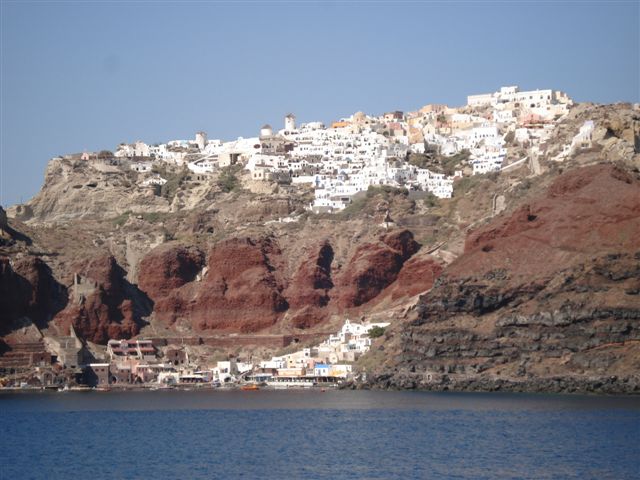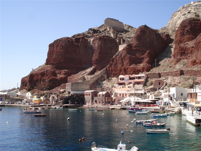 | Nach einem sehr kontinentalen Frühstück in der guten Stube der Pension Makis übernehmen wir pünktlich um 09:00 Uhr unseren Mietwagen bei Hermes Rent a Car. Der Hyundai Athos bringt uns zuerst hinauf nach Pirgos, wo wir durch den Ort bis hinauf zum alten Kastell schlendern. Anschließend geht die Fahrt weiter in den Süden nach Akrotori. Die bekannten Ausgrabungen sind wegen Einsturz der Dachkonstruktion leider nicht zu besichtigen. Daher fahren wir direkt weiter zum Red Beach. Da noch Vorsaison ist, sind hier glücklicherweise weder Liegen noch Sonnenschirme zu finden. Nach einem Bad im Mittelmeer wird es hier langsam voller, so dass wir nach Vlichada weiterfahren. Hier ist der Strand fast menschenleer und wir Baden vor einer imposanten Bimssteinkulisse. Nach der Abkühlung geht's weiter über Perissa an die Nordspitze der Insel, nach Oia. Hier fahren wir zum Ammoudi-Hafen hinunter und gehen noch den Weg an den Klippen entlang bis zur kleinen Insel Agios Nikolaos. Oben in Oia bummeln wir auch hier durch die malerischen Gassen und platzieren uns dann rechtzeitig am alten Kastell zum Sonnenuntergang. Leider ist es hier sehr voll, so dass man kaum die Ruhe findet, den Sunset zu genießen. | |