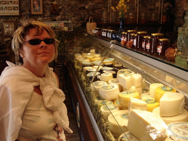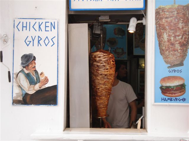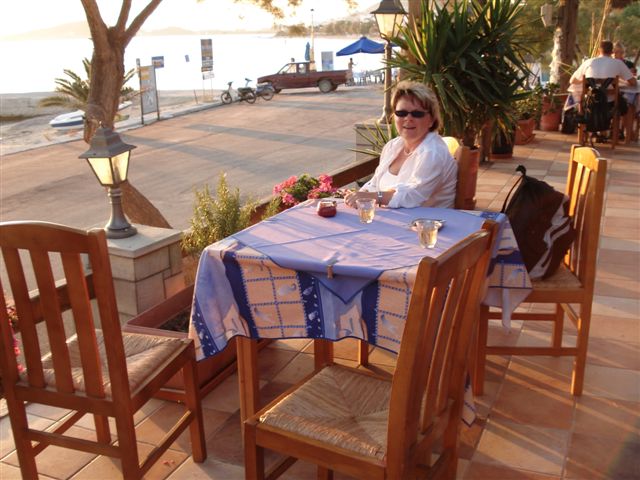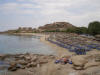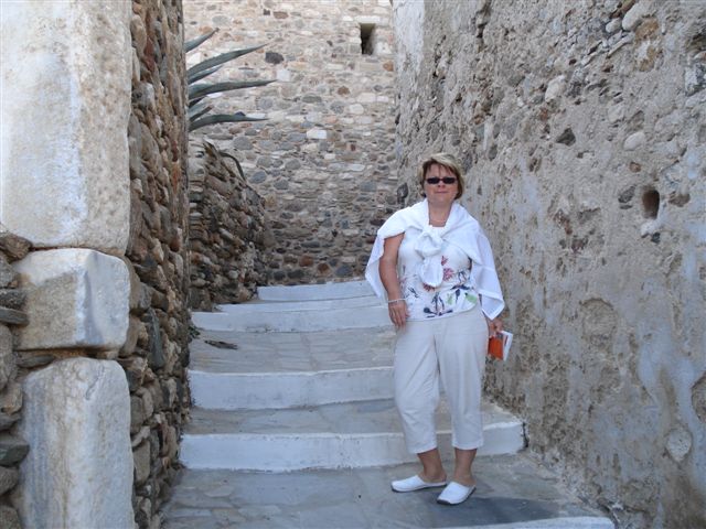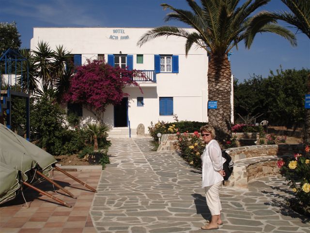 | Nach einem überraschend guten Frühstück (...in Griechenland gibt es ja doch Wurst...) fahren wir mit dem Bus, welcher direkt vor Hotel abfährt, nach Naxos-Stadt. Dort bummeln wir vom Hafen aus direkt hinauf zum Kastro-Viertel. Vor allem die Old-Market-Street ist wirklich toll. Bei unserem Bummel entdecken wir noch einen tollen Käseladen, welcher Käse aus eigener Herstellung verkauft (...Tipp aus dem Dumont-Reisefüher). Hier kommen wir mit der Besitzerin ins Gespräch und bekommen zu unserem Käse noch eine Schale mit einer Art gebackenem Käse geschenkt. Danach führt uns der weitere Weg hinaus auf die kleine Halbinsel zum Wahrzeichen von Naxos, dem Tempeltor. Nachdem uns der Bus zurück nach Agia Anna gebracht hat erkunden wir zu Fuß die Strände an der Westküste. Zuerst Baden wir an einem von Felsen eingerahmten Sandstrand unmittelbar hinter unserem Hotel. Später schlendern wir den Dünenstrand weiter nach Süden bis nach Plaka-Beach. Die Strände auf Naxos sind wirklich toll und zählen zu den schönsten auf den Kykladen. Nach der Rückkehr und dem Abendessen in einer Strandtaverne übernehmen wir noch schnell den Mietwagen und lassen den Abend bei einem Ouzo auf unserem Balkon ausklingen. | |