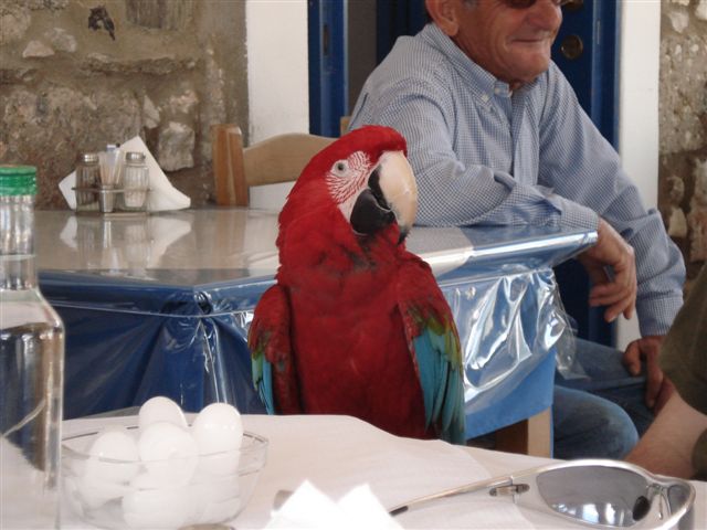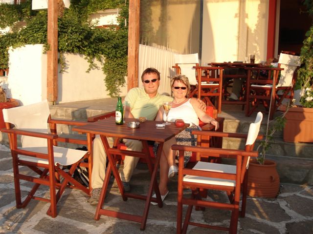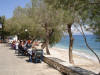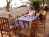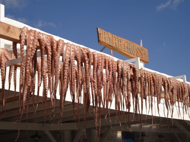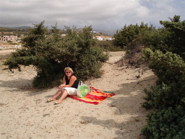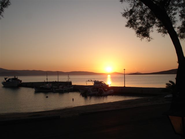 | Heute meint es das Wetter wieder richtig gut mit uns und uns lacht ein strahlend blauer Himmel entgegen. Nach dem Frühstück bringt uns der Bus Nr.4 nach Pounda, wo schon die Pendelfähre hinüber nach Antiparos, der kleinen Schwesterinsel von Paros, auf uns wartet. Für ganze 0,70€ gelangt man in knapp 10 Minuten hinüber auf die andere Seite. Auch hier besichtigen wir zuerst den kleinen Ort inkl. des Kastro-Viertels. Alles ganz toll und ziemlich chillig. Nach unserem Rundgang laufen wir in ca. 15 Minuten hinauf an die Nordspitze der Insel zum Diapori-Beach, wo wir fast allein sind und einen Platz zwischen Wacholderbüschen in den Dünen finden. Gegen 14:30 Uhr wird die Sonne zu heftig, so dass wir zurück nach Kastro schlendern, um in der Taverne Statheros, direkt am Hafen sehr gut und günstig zu Essen. Nachdem wir dort noch eine Gratisperformance eines Gastes, der seinen Riesenara mitgebracht hatte, erleben, fahren wir mit der Fähre wieder zurück nach Pounda und weiter nach Parikia. Nach Duschstopp im Hotel genehmigen wir uns noch einen Sundowner im "La Bodega" an der Promenade. | |