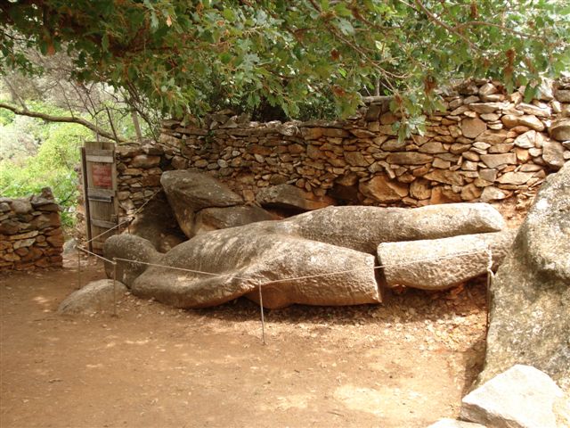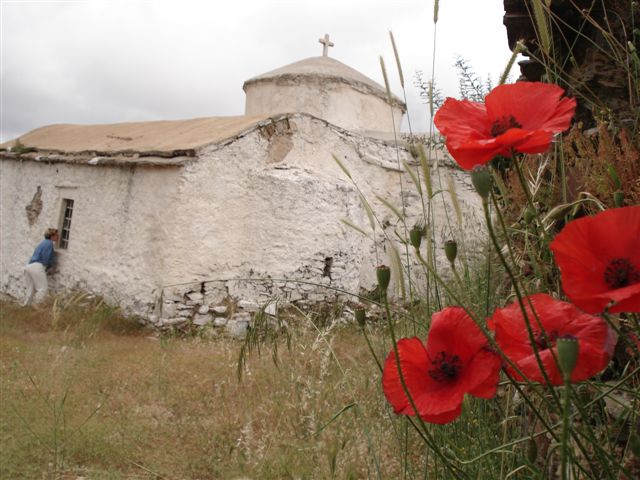 | Gegen 8:45 Uhr starten wir mit unserem Mietwagen (Matiz) in Richtung Chalki. Nach dem Ortsbummel fahren wir weiter nach Filoti, um am Fuße des Mount Zas (1004m, der höchste Berg der Kykladeninseln) eine Kurzwanderung zu einer Quelle zu unternehmen. Gleich anschließend fahren wir weiter nach Apiranthos, einem Städtchen fast vollständig aus Marmor. Auch hier drehen wir eine Runde durch den Ort und an jeder Ecke gibt es Dinge zu fotografieren. Weiter geht unsere Fahrt in den Norden in Richtung Koronos. Hinter Moni besuchen wir noch die kleine Kirche Panagoa Drossiani, welche aus dem 6. Jahrhundert stammt und der man ihr Alter förmlich ansieht. Leider werden die Wolken dichter und es fängt an zu regnen. Trotzdem gehen wir die kurze Strecke zu den Kouros-Figuren bei Flerio. Auf dem Rückweg können wir die Regenjacken erstmal wegpacken. Gerade als wir wieder in Naxos-Stadt zurück sind und uns gerade mit einem Gyros-Pita stärken, geht ein heftiger Schauer nieder und flutet die Promenade von Chora. Wir beschließen trotzdem weiter in Richtung Süden zu fahren und zweifeln unterwegs wegen des wieder einsetzenden Regens, ob unsere Entscheidung gut war. Als wir Aliko erreichen hört es auf zu regnen und es lugt sogar die Sonne hervor. Also entschließen wir uns, am Glifada-Beach ins Wasser zu springen. Zurück in Agia Anna gehen wir am Abend in Richtung Marangas-Beach, um in der dortigen Taverne "Paradiso" lecker zu Abend zu essen. | |