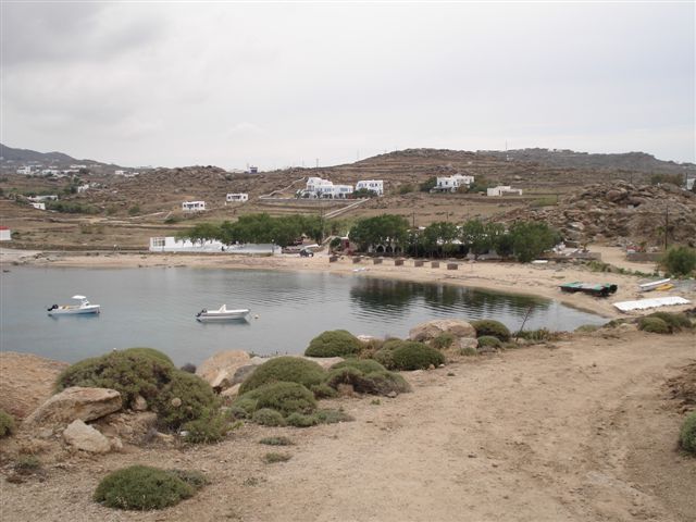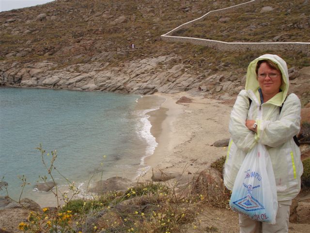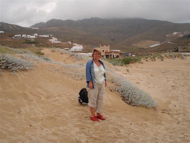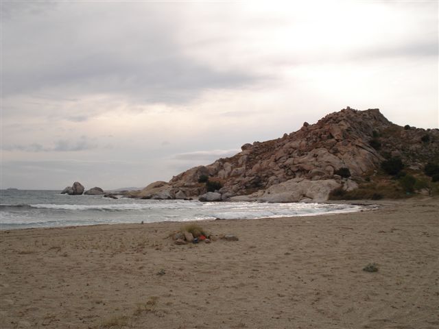 | Auch heute werden wir vom Regen geweckt. Zum Frühstück ist es grau und es regnet noch immer. Als der Regen glücklicherweise aufhört brechen wir zu einer Wanderung in den Inselnorden nach Panormos auf. Als wir dort nach ca. einer Stunde eintreffen, erleben wir einen herrlichen menschenleeren Dünenstrand. Leider fängt es schon nach wenigen Minuten wieder an zu regnen und wir machen uns auf den Rückweg. Da es inzwischen nicht nur tröpfelt sondern richtig regnet stellen wir uns in einer Taverne am Strand unter. Glücklicherweise werden wir von französischen Touristen mitgenommen und so erreichen wir wieder unser Hotel Petinaros. Am Nachmittag lockert die Bewölkung auf und wir entschließen uns spontan zu einer Kurztour nach Agios Ioannis. Der Bus bringt uns via Ornos dahin. Kaum treffen wir hier ein, fängt es wieder mal an zu regnen. Trotzdem gehen wir an der Küste entlang und erreichen nach wenigen hundert Metern einen herrlichen Strand mit türkisblauen Wasser und ohne jegliche Sonnenliegen. Da wir eh schon nass sind, gehen wir also hier baden. Da es inzwischen mehr regnet, kehren wir um und wollen mit dem Bus zurückfahren. Kaum an der Haltestelle eingetroffen, hört der Regen auf und wir drehen einfach wieder um. Nach einem nochmaligen Bad nehmen wir dann den nächsten Bus zurück nach Mykonos. Nach kurzem Duschstopp geht's nochmals hinunter in die Stadt, wo wir zuerst in der Taverna Nikos ein hervorragendes Kleftiko genießen. Da auch heute im Venetia-Viertel eher Party-Stimmung herrscht, ziehen wir uns zum Sunset an den Strand unterhalb der Windmühlen zurück und erleben von hier aus den letzten Sonnenuntergang hier auf Mykonos. | |