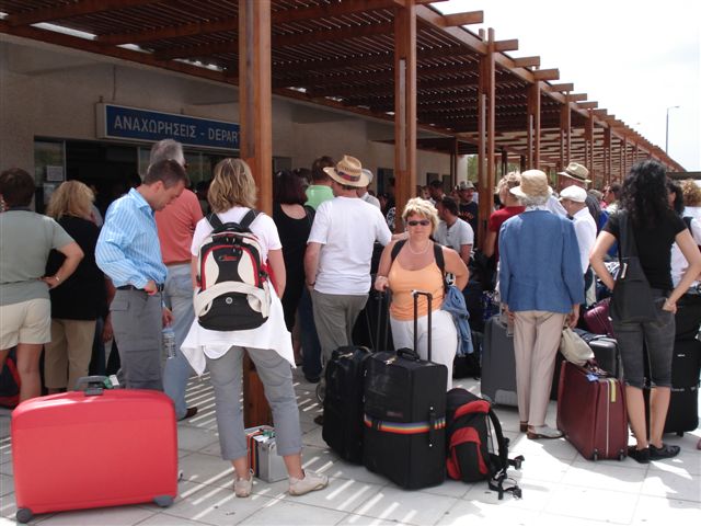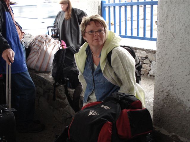 | Ein letztes Mal genießen wir in Marias guter Stube das Schlemmerfrühstück. Dann bummeln wir noch ein letztes Mal durch Kamari und machen uns dann startklar für die Rückreise. Der Bus bringt uns zurück zum Flughafen. Dort herrscht das totale Chaos. Alle Passagiere müssen vor dem Terminal stehen bleiben und werden schubweise eingelassen. Da am Abflug weder jemand von alltours zu sehen ist noch auf irgendeiner Infotafel zu ersehen ist an welchen Schalter wir einchecken müssen, stellen wir uns erstmal mit in die allgemeine Reihe an. Irgendwie gelingt es uns dann doch in das Terminal vorzudringen und drin geht das Chaos weiter. Wir schaffen es dann bis zum Bus, der uns zur Maschine bringt. Selbst jetzt werden wir auf Santorin vom gerade jetzt einsetzenden Regen verabschiedet. Mit kurzer Verspätung starten wir und kommen fast pünktlich in Nürnberg an. Den Regen haben wir von Santorin mitgenommen, denn auch hier in Nürnberg regnet es. | |