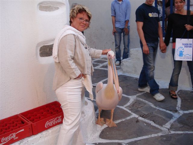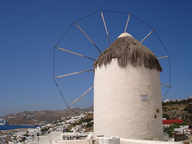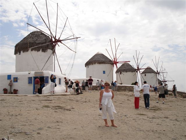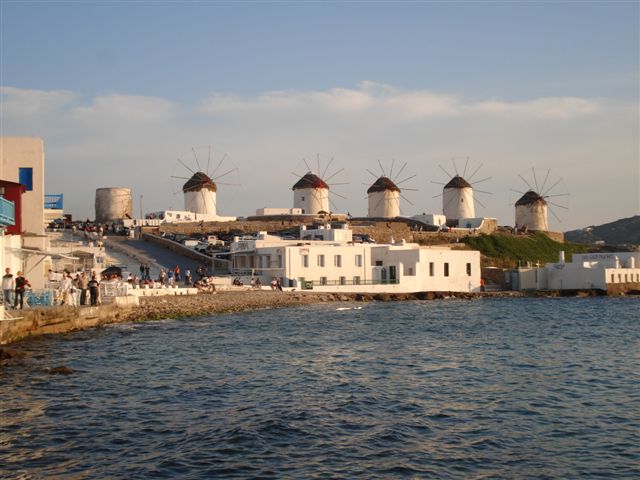 | Nach einem finalen Bummel durch Parikia werden wir gegen 11:30 Uhr am Hotel abgeholt und die wenigen Meter vor zum Hafen gebracht. Da der Seajet2, das Schnellboot, welches uns hinüber nach Mykonos bringen wird, noch auf sich warten lässt, nehmen wir am Hafen noch schnell einen Gyros-Pita. Als es dann endlich losgeht, macht die Seajet mächtig Fahrt und wir erreichen nach nur 40 Minuten Mykonos. Wie leider öfters bei unseren Transfers werden wir auch in Mykonos von grauen Wolken und Regen empfangen. Nachdem der Busfahrer, welcher uns empfangen hat, mit der Situation etwas überfordert war, hat sich dann das Chaos doch beherrschen lassen und er hat uns den Berg hinauf in das Hotel Petinaros gebracht. Trotz der längeren Fahrt kann man die Altstadt über einen Treppenweg in nur 10 Minuten erreichen. Hier auf Mykonos erwischen wir sogar ein richtig gutes Hotel, sogar mit Pool und allem was man braucht. Da es glücklicherweise aufgehört hat zu Regnen, gehen wir die Treppen hinunter zur Altstadt. Hier bummeln wir gemeinsam mit tausenden Kreuzfahrern durch die Gassen. Mykonos-Stadt ist wunderbar aber ziemlich hektisch, vor allem, wenn die großen Kreuzfahrtschiffe draußen vor Anker liegen. Wir besichtigen die bekannten Windmühlen und das Venetia-Viertel und Essen in der Taverna "Ta Kioupa" lecker zu Abend. Dann steigen wir die Treppen wieder hinauf und lassen den Abend am Pool ausklingen. | |