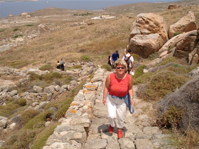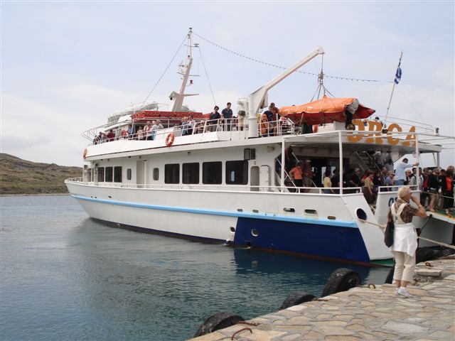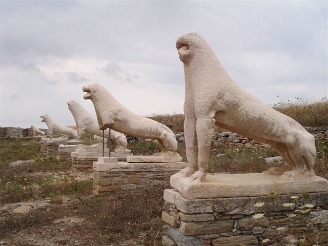 | Nach dem Frühstück auf der Terrasse des Hotel Petinaros (...trotz des guten Hotels erweist sich auch das Frühstück als sehr kontinental) besorgen wir uns unsere Tickets zur Überfahrt nach Delos (12,50€ p.P.). Die Orca bringt uns um 10:00 Uhr in ca. 35 Minuten Fahrt hinüber zur kleinen Insel Delos, welche in der Antike das Herz Griechenlands war. Auch wenn von den meisten Gebäuden nur die Grundmauern übrig sind, so kann man doch die Ausmaße der historischen Stadt erkennen. Nachdem wir die berühmte Löwenterrasse und das Museum besichtigt haben steigen wir noch auf den Kinthos (113m) hinauf. Von hier oben hat man einen herrlichen Ausblick und man kann die Dimensionen der Stadt gut erkennen. Um 13:30 Uhr bringt uns die Orca wieder zurück nach Mykonos. Nach kurzer Relaxpause am Hotelpool steigen wir wieder hinunter zur Stadt, um an der Waterfront am Venetia-Viertel einen Sundowner zu genießen. Auch wenn das Preisniveau hier ziemlich heftig ist, so ist doch das Panorama einzigartig. | |
