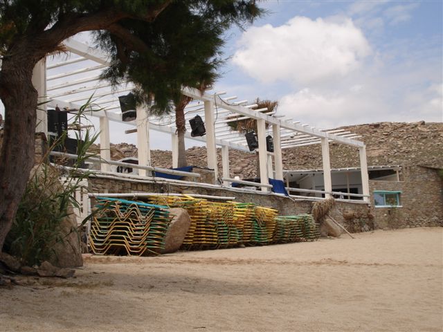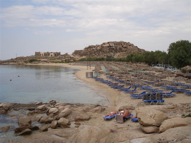 | Heute erkunden wir die Strände der Südküste. Der Bus bringt uns in kurzer Fahrt zum Paradise-Beach. Hier werden wir von bedecktem Himmel und einem Meer an Sonnenliegen- und schirmen erwartet. Unseren Versuch, per Pedes zum Super-Paradise-Beach vorzudringen müssen wir dann abbrechen. Dieser ist wahrscheinlich wirklich nur mit Mietwagen oder mit Badeboot von Platis Gialos aus zu erreichen. Also queren wir den Paradise-Beach wieder und gehen weiter nach Westen zum Paranga-Beach. Auch hier finden wir es nicht sonderlich einladend, da man auch hier den Strand vor lauter Sonnenliegen kaum noch sieht. Auch der Agia-Anna-Beach kann nicht wirklich überzeugen und so gehen wir zum Paradise-Beach zurück, wo wir die inzwischen wieder scheinende Sonne genießen. Im Hintergrund werden schon die Beachclubs aufgebaut und die riesenhaften Lautsprecherboxen lassen Rückschlüsse auf das Strandleben während der Hochsaison zu. Der Bus bringt uns wieder zurück nach Mykonos, wo wir auch heute Abend nochmal durch die Stadt bummeln. Heute ist es deutlich voller und in den Gassen ist es fast schon unangenehm voll. Auch im Venetia-Viertel herrscht heute eher Party-Stimmung. | |