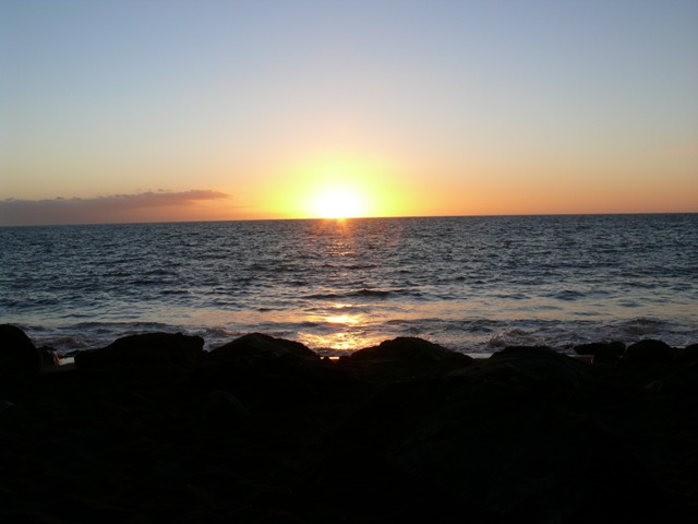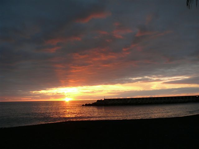 | Mit etwas Verspätung startet unser Air-Berlin-Flieger, welcher tatsächlich eine Maschine der LTU ist, in Richtung La Palma, wo wir gegen 13:00 Uhr landen. Dort treffen wir Jose von der Autovermietung und übernehmen die Schlüssel für unseren Mietwagen. Die erste Fahrt führt uns ins Richtung El Paso ins Büro von Yanes Rent a Car, wo wir schnell noch den Mietvertrag für das Auto unterzeichnen und auch schon von unserem Vermieter erwartet werden, welcher uns gleich zu "unserer" Casa Bodega bringt. Wir haben wirklich ein tolles kleines kanarisches Häuschen erwischt, wo es an nichts fehlt. Nach einer kurzen Erfrischung starten wir wieder. Unseren ursprünglichen Plan zur Cumbrecita zu fahren, haben wir schnell wieder aufgegeben, da es hier oben doch ziemlich wolkig war. Kurzerhand fahren wir hinunter an die Küste nach Puerto de Tazacorte, um dort am Strand zu bummeln. In der Taberna del Puerto lassen wir uns den ersten Vino und ein kühles Dorada schmecken. Nach einem herrlichen Sonnenuntergang erledigen wir noch schnell ein paarr Einkäufe und essen dann auf unserer Terrasse zu Abend. | |||