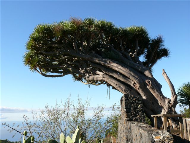 | Heute Morgen frühstücken wir outdoor auf unserer Terrasse. Anschließend fahren wir über Tijarafe und Puntagorda in Richtung Roque de los Muchachos. Zwischendurch machen wir bei Puntagorda einen kurzen Fotostopp am markantem Drago von Puntagorda. Überrascht sind wir, als kurz danach die Straße hoch zu den Observatorien wegen Bauarbeiten gesperrt ist (sie ist nur von der anderen Seite aus Richtung Santa Cruz befahrbar). Also disponieren wir um und fahren noch paar Kilometer weiter nach Las Tricias, wo wir die Wanderung zum Dragohain unternehmen. Hier oben in dieser Ecke der Insel ist noch völlige Abgeschiedenheit und nur weniger Bewohner, oft deutsche Residenten, haben sich alte kanarische Häuser ausgebaut. Zu Beginn unserer Runde ist es noch sehr sonnig, doch es ziehen immer mehr Wolken auf. Kurz vor Ende unserer Rundtour, fängt es ziemlich an zu regnen und wir sind froh, im Auto zu sein. Wir fahren weiter nach Garafia, wo wir im Restaurant El Bernegal sehr gut essen. Nach dieser kulinarischen Pause fahren wir durch den Regen entlang der Nordküste um die Insel herum bis Santa Cruz und von dort über die Cumbre zurück auf die Westseite. Da dort gutes Wetter ist, entschließen wir uns zu einem abendlichen Bad und fahren an die Playa de las Monjas bei Puerto Naos. Nach dem Sonnenuntergang geht's dann wieder zurück nach El Paso. | |||