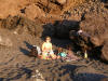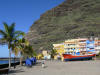 | Heute früh ist fast keine Wolke an der Cumbre zusehen. Da es Ines gesundheitlich immer noch nicht besser geht, entschließen wir uns zu einer Fahrt nach Santa Cruz. Da eine längere Wanderung nicht möglich ist, bummeln wir halt durch die Hauptstadt. Nachdem wir uns mit Mühe einen Parkplatz ergattert haben schlendern wir durch die Gassen. Da gerade Rebajas-Zeit (Schlussverkauf) ist, erstehen wir diverse T-Shirt und auch eine Tasche muss natürlich sein. Nach unserem Shopping-Bummel geht's wieder hinüber nach El Paso. Nach kurzen Stopp im Quartier fahren wir am frühen Nachmittag hinunter zur Westküste via Las Manchas in Richtung Puerto Naos. Hier verleben wir einen Badenachmittag an der Playa Charco Verde. Heute ist ruhiges Wetter, so dass wir hier richtig gut schwimmen können. | |||