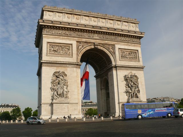 | Heute Morgen starten wir zu Fuß vom Hotel in Richtung Arc de Triomphe. Nach dessen Besichtigung schlendern wir die Champs Ellysee hinunter. Vorbei am Grand Palais queren wir die Seine, dann über den Place de la Concorde in Richtung Louvre weiter zu gehen. Weiter geht unser Stadtrundgang dann in Richtung Oper. Da sich dort auch das La Fayette befindet, müssen wir natürlich auch dieses in Augenschein nehmen. Da die Füße langsam schwerer werden fahren wir ein Stück mit der Metro. Am Montmartre steigen wir dann aus und schlendern vorbei am Moulin Rouge hinauf zur blendend weißen Kirche Sacre Coeur. Nach einer Pause bringt uns dann die Metro zurück in Richtung Tour Eiffel, wo wir zu Füßen des Turmes die Abendstimmung genießen. | ||