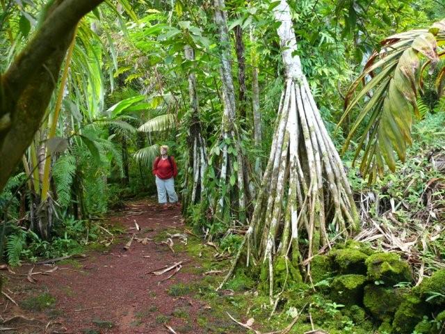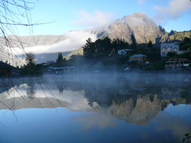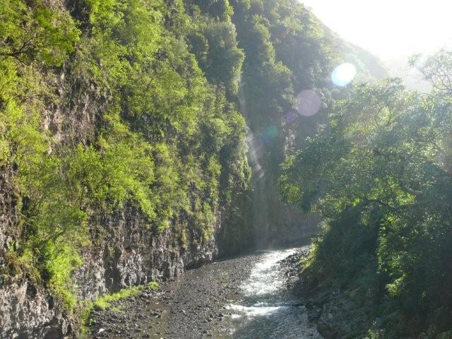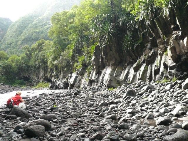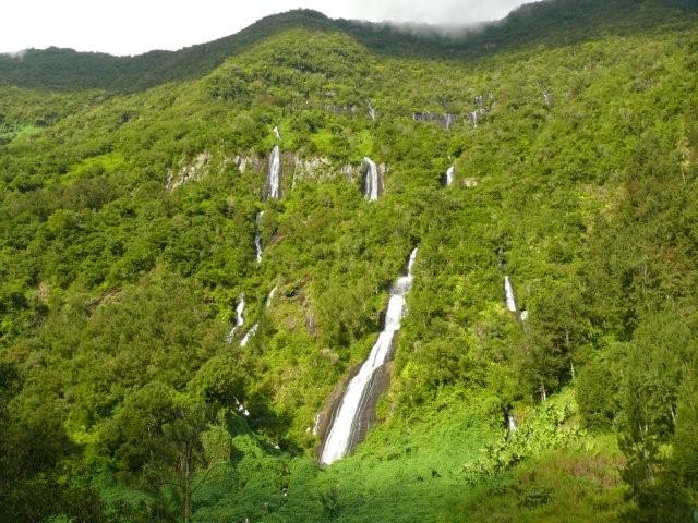 | Heute früh klingelt bereits um 06:30 Uhr der Wecker, da hier auf La Reunion zeitiges Aufstehen ein Muss ist, um nicht bald von den Wolken eingehüllt zu werden. Nach dem Frühstück fahren wir nach Ilet a Vidot, von wo aus unsere Wanderung (Rother-Wanderführer Tour 26 ++) startet. Schon nach wenigen Metern queren wir (glücklicherweise über eine neu errichtete Brücke) den Rivierie du Mat, um dann im stetigen Aufstieg den Le Grand Sable zu erreichen. Mehrfach queren wir Bäche und kleinere Flüsse wobei die letzte Querung des Riviere du Mat schon grenzwertig ist, da wir bei stärkerer Strömung bis zu den Oberschenkeln durch Wasser waten. Bei Ilet Trou Blanc kommen wir an einer kleinen Ananas-Plantage vorbei und durchqueren die allgegenwärtigen Zuckerrohrfelder. Am Auto zurück fahren wir aus dem Cirque heraus und machen an den Brautschleierwasserfällen Station. Hier ergießen sich eine Vielzahl von Kaskaden über mehrere Etagen ins Tal. Via St. Benoit fahren wir an der Ostküste entlang um im Süden auf die Hochebene hinauf zu fahren. Zwischendurch haben wir noch einen kleinen Abstecher nach Abondance unternommen, mussten dort aber wegen der schon fortgeschrittenen Tageszeit abbrechen. Je höher wir kommen, desto nebeliger wird es und ab Plain des Palmistes beträgt die Sichtweite keine 50m mehr. So fahren wir am Hotel Les Geraniums vorbei und finden es erst, als wir umdrehen. Das Hotel ist recht einfach aber das Hotelrestaurant ist sehr gemütlich und hat hervorragende lokale Küche. Die ganze Nacht regnet es weiter und der Nebel hängt in den Bergen fest. | |||