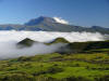 | Auch heute Morgen ist alles grau und regnerisch. Nach dem Frühstück brechen wir gegen 08:00 Uhr im Hotel auf. Eine Zeit lang haben wir überlegt, ob wir wegen des schlechten Wetters die Fahrt zum Vulkan weglassen. Glücklicherweise haben wir das nicht gemacht, denn nach 10 Minuten Fahrt durchbrechen wir die Wolkendecke und stehen bei strahlend blauen Himmel auf der Hochebene und haben ein Super-Panorama bis zum Piton des Neiges (3071m). Hier oben hat die Landschaft einen Charakter der uns an Irland bzw. die Azoren erinnert. Nach einigen Kilometern (...die Strecke von Bourg Murat zum Vulkan beträgt ca. 23 KM, 45min Fahrt) ändert sich die Landschaft abermals und man taucht in typisch vulkanisches Gelände ein. Ein Muss ist ein Fotostopp an der Plain des Sables (Sandebene ca. 2300 Hm). Die letzten Kilometer verwandelt sich die Asphaltstraße zur Piste und wir erreichen den Parkplatz am Pas de Bellecombe. Wir entschließen uns nicht die klassische Vulkantour zu wandern (...der Dolomieu-Krater ist seit dem Ausbruch Anfang 2007 b.a.w. nicht begehbar) sondern am Kraterrand entlang die Tour zum Nez Coupe de Ste-Rose (Rother-Wanderführer Tour 47 ++) zu gehen. Von hier aus hat man durchgehend immer neue Ausblicke auf den Krater und eine Vielzahl von Nebenkrater, wie z.B. die markante Formica Leo. Plötzlich ziehen innerhalb von wenigen Minuten Wolken auf, so dass wir uns zur Rückkehr zum Auto entschließen und die Strecke nach Bourg Murat teilweise im dichten Nebel zurücklegen. Von hier versuchen wir noch einen Abstecher nach Bois Court aber auch hier verdirbt uns der dichte Nebel das Panorama ins Tal. Via Le Tampon fahren wir hinunter zur Süd-West-Küste, wo wir zum einzigen Palmenstrand der Insel, dem Grand Anse, fahren. Kaum sind wir eingetroffen, fängt es auch hier an zu regnen. Wir fahren im Süden noch bis hinter St. Joseph um dann unser heutiges Etappenziel Entre Deux anzusteuern. Kaum erreichen wir wieder die Bergregion verdichten sich die Wolken abermals und es schüttert wie aus Kübeln. Heute übernachten wir im Hotel Le Dimitile, welches in 2007 neu erbaut worden ist und absolut toll ist. Moderne Einrichtung, tolle Lage und sehr gutes, wenn auch nicht preiswertes, Restaurant. Die Besitzer sprechen gut Deutsch, da sie aus dem Elsass stammen. | |||