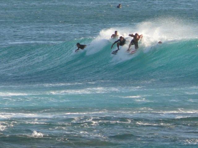 | Auch heute gewinnen wir den Kampf gegen die Spatzen und frühstücken auf der Terrasse des Boucan Canot. Da heute die Wellen etwas heftiger hereinkommen und wir wieder Schnorcheln wollen, fahren wir mit dem Bus via St. Gilles les Bains zum Strand von L' Hermitage. Hier finden wir unter Filaosbäumen ein schattiges Plätzchen. Bis zum Nachmittag sind wir fast durchgehend im Wasser und sind auch heute von der Vielzahl der Fische und den Korallen begeistert. Im Nachmittag fahren wir zurück zum Boucan Canot und freuen uns auch heute auf unser Gourmet-Abendessen. | |||