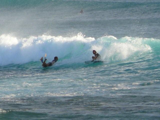 | Heute Morgen genießen wir ein leckeres outdoor-Frühstück am Pool des Le Nautile. Nach kurzen Packen unternehmen wir noch einen Bummel zum Lagunenstrand am Hotel und genießen die Stille am Morgen. Dann fahren wir in Richtung Norden nach Boucan Canot, wo wir uns für die letzten 4 Tage noch zur "Badeverlängerung" im gleichnamigen Hotel direkt am Strand eingemietet haben. Da unser Zimmer noch nicht fertig ist machen wir es uns im Außenbereich bzw. am Strand von Boucan Canot bequem. Auch wenn hier keine Lagune vorgelagert ist und damit die Wellen etwas heftiger hereinrollen, können wir heute auch hier schön Schnorcheln und die Unterwasserwelt betrachten. An den folgenden Tagen wird das wegen der hohen Wellen hier nicht mehr möglich sein und die Surfer beherrschen dann das Revier. Dann beziehen wir unser Zimmer mit Meerblick und dann geht es noch mal hinunter an den Strand. Am Abend erleben wir dann das ersten Abendessen im Gourmet-Restaurant des Hauses. Hier gibt es heute, wie auch an den folgenden Abenden leckere und teilweise exotische Dinge zu essen. Heute gibt es als Vorspeise z.B. Carpaccio vom Känguru. Das Restaurant ist spezialisiert vor allem auf Fischgerichte, was wir in den unterschiedlichsten Formen (z.B. roh als Carpaccio von der Dorade oder Thunfischtatar bzw. gedünstet in verschiedenen Varianten) erleben dürfen. So bildet das Abendessen den krönenden Abschluss eines jeden Tages und wir freuen uns immer schon den ganzen Tag darauf. Während der Rundreise hatten wir lediglich Frühstück gebucht und glücklicherweise haben wir hier Halfboard, also Halbpension, was entgegen unserer sonstigen Verfahrensweise eine gute Wahl war. | |||