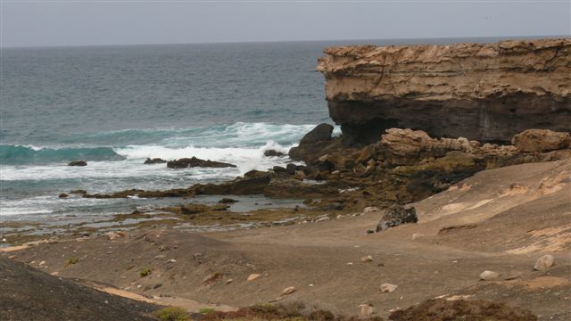 | Heute werden wir vom Regen geweckt. Leider fällt damit unser Terrassenfrühstück buchstäblich ins Wasser. Als wir in Richtung Inselmitte aufbrechen huscht noch der eine oder andere Schauer vom Himmel aber die Tendenz zeigt Besserung. Nach ca. einer halben Stunde Fahrt via Costa Calma erreichen wir La Pared, die Wand. Auch wenn wir diese nicht finden so entdecken wir ein gut ausschauendes Fischrestaurant in exponierter Lage. Leider erweist sich unser nachfolgender Abstecher in eine Ziegenkäsekooperative als Sackgasse, da abierto todo de las dias eigentlich täglich geöffnet bedeutet doch am kleinen Geschäft der Kooperative wird das dann auf Domingos y Festivos cerrado präzisiert...und heute ist leider Sonntag. Also nichts mit frischen Queso de Cabra. So fahren wir weiter nach Ajuy, wo es noch recht ursprünglich ist. Direkt am Strand geht ein Klippenweg zu den Höhlen von Ajuy. Über Stufen kann man zu diesen hinunter steigen während draußen die Wellen ziemlich heftig zu Gange sind. Zurück am Auto fahren wir weiter nach Pajara, wo wir die Ortskirche besichtigen. Hier sind wir 1996 bei unserem Kurzbesuch schon einmal gewesen. In einem kleinen Geschäft gegenüber der Kirche erstehen wir endlich frischen Ziegenkäse und auch noch Almogrote, den wir hier schon gar nicht mehr vermutet hätten. Auf der Weiterfahrt nach Betancuria machen wir noch zwei Stopps, so auch am Mirador oberhalb des Barranco de la Peñitas. Nach kurzer Fahrt erreichen wir dann Betancuria, die alte Inselhauptstadt. Hier bummeln wir durch den historischen Ort. Da heute nur wenige Tagesgäste da sind es hier ausgesprochen idyllisch. Via Antigua fahren wir wieder hinunter zur Küste und machen einen kurzen Stopp in La Playitas, wo wir an der kleinen Promenade bummeln. Dann fahren wir noch paar Kilometer weiter zum Faro de la Entallada, dem Leuchtturm welcher den östlichsten Zipfel Fuerteventuras markiert. Der Mietwagen bringt uns dann wieder zur FV-2 auf der wir Richtung Morro Jable fahren. Kurz vor Jandia biegen wir zur Playa Mal Nombre ab und genießen die Abendsonne und nehmen ein finales Bad im Atlantik. | ||||