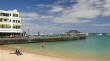 | Heute an unserem letzten kompletten Urlaubstag meint es die Sonne nochmals gut mit uns. So können wir schon zum Frühstück die ersten Sonnenstrahlen auf der Terrasse genießen. Wegen des tollen Wetters verwerfen wir unseren ursprünglichen Plan nochmals in den Inselnorden nach El Cotillo zu fahren und verbleiben in Morro Jable am Corronado-Beach. Wir installieren unsere Strandmuschel, welche kurze Zeit später wegen des ständigen drehenden Windes fast davon fliegt. Trotz der frischen Brise erleben wir einen tollen Badetag zum Ausklang unseres Urlaubes. Nach Zwischenstopp im Quartier gehts am Abend nochmals in die selbe Richtung. An der Strandpromenade im Restaurante Leo's lassen wir uns bei Meerblick in der ersten Reihe Cabrito, Pulpo und Sardinas a la plancha schmecken. | ||||