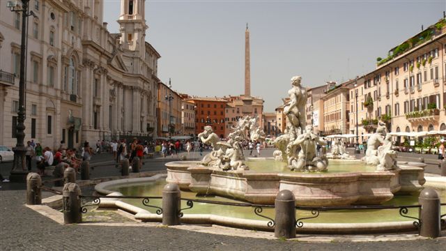 | Schon gegen 2:00 Uhr starten wir von zuhause in Richtung Flughafen Berlin-Schönefeld, von wo unser easyJet-Flieger pünktlich um 07:00 Uhr nach Rom startet. Zwar landen wir pünktlich in Rom-Ciampino, doch hier müssen wir erst einmal feststellen, dass unser Koffer sich nicht auf dem Gepäckband finden lässt. Nach Abstecher bei Lost & found findet er sich dann doch noch an und wir nehmen den Flughafenbus, welcher und für 4,-€ p.P. in ca. 45 Minuten zum Termini bringt. Nachdem wir in unserem Hotel San Marco eingecheckt haben, machen wir uns mit der Metro Linea A auf dem Weg in Richtung Piazza del Popolo. Von hier aus drehen wir die Standard-Runde durch das Centro Storico. Spanische Treppe, Trevi-Brunnen, Pantheon, Piazza Navona und Campo de Fiori. Nach dem Abendessen im "Antica Roma" machen wir noch einen Abstecher in den Petersdom, um von hier in Richtung Ottaviano zu gehen, von wo aus uns die Metro wieder zurück zum Termini bringt. | ||||