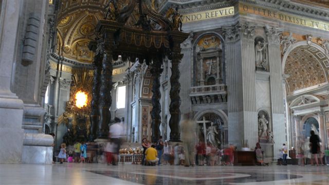 | Auch heute starten wir wieder recht zeitig. Heute wollen wir nochmals zum Petersdom, wohin wir mit der Metro Linea A bis Ottanviano fahren. Am Petersdom erwartet uns schon eine Schlange von Besuchern. Zuvor haben wir schon die Warteschlange an den vatikanischen Museen passiert. Diese war nicht so lang wie bei unserem letzten Besuch (...am letzten Sonntag im Monat hat man hier freien Eintritt aber man sollte sich das nicht unbedingt antun). Den Petersdom hingegen erreichen wir nach relativ kurzer Wartezeit. Hier nehmen wir den Weg hinauf zur Kuppel, von wo aus man das ultimative Panorama über die ewige Stadt hat. Auf der Sonnenseite kann man nur schnell einen Blick erhaschen, da man es in der prallen Sonnen kaum aushält. Die meisten Besucher genießen die Aussicht eher von der schattigen Nordseite, von wo aus man die päpstliche Verwaltung und die vatikanischen Gärten sieht. Über die Treppe gelangen wir wieder hinunter und schauen nochmals kurz ins Innere des Petersdom, welcher uns immer wieder aufs Neue fasziniert. Über die Via della Conciliazione gehen wir zur Engelsburg und über die Engelsbrücke erreichen wir wieder das Centro Storico, wo wir in einer Osteria zu Mittag essen. Dann müssen wir schon wieder zurück zum Hotel, wo wir uns unsere Koffer schnappen und uns der Flughafenbus wieder vom Termini zurück zum Flughafen in Ciampino bringt. | ||||