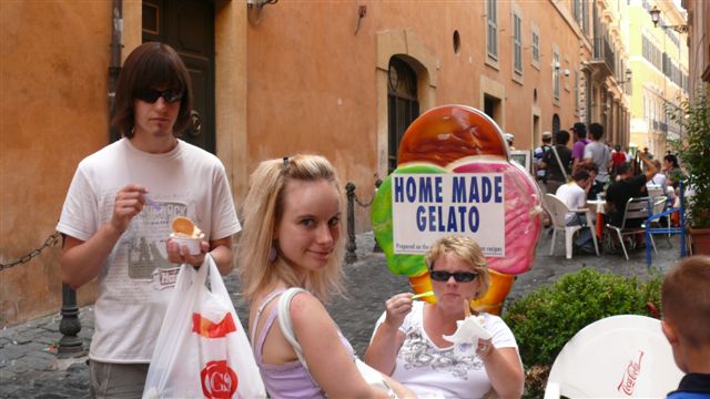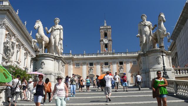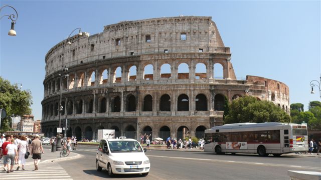 | Auch heute werden wir schon am Morgen von der unbarmherzig vom Himmel brennenden Sonne begrüßt. Schon als wir gegen 09:00 Uhr vom Hotel aus starten, liegen die Temperaturen deutlich jenseits der 30°-Marke. Jenny und Marcel wollen heute das historische Rom (Palatin, Forum Romanum, Colosseum) besichtigen. Da wir schon einige Male diese Runde gedreht haben, brechen wir mit der Metro Linea B in Richtung Ostia Antica auf. An der Piramide steigen wir um in die Lido-S-Bahn, welche uns in knapp 30 Minuten nach Ostia Antica, der ehemaligen Hafenstadt des antiken Rom, bringt. Hier besichtigen wir das riesige Areal, welches noch einen guten Eindruck von den Bauten der Antike vermittelt. Nach unserem Rundgang fahren wir noch 3 Stationen weiter an die heutige Küstenlinie bei Lido di Ostia. Auch wenn uns wegen der extremen Temperaturen sehr nach einem bade ist, so werden wir hier ziemlich enttäuscht. Wie zu erwarten war, versammelte sich halb Rom hier. Auch ist das Areal grässlich zubetoniert so dass wir nach kurzer Dauer wieder die Rückfahrt nach Rom antreten. Vorbei am Colosseum schlendern wir in brütender Nachmittagssonne die Via Fori Imperiali entlang. Vorbei am Forum Romanum (...hier zahlt man neuerdings Eintritt - Kombiticket mit Palatin und Colosseum) und den Kaiserforen führt uns unser Weg hinauf zum Kapitol und über das Marcello-Theater geht es weiter hinüber nach Trastevere, wo wir uns wieder mit Jenny und Marcel treffen. Nach lecker Pizza und Pasta führt uns der Rückweg abermals entlang unserer Standardstrecke vom Campo de Fiori bis zur Spagna, von wo aus wir mit der Metro zurück zum Hotel fahren. | ||||