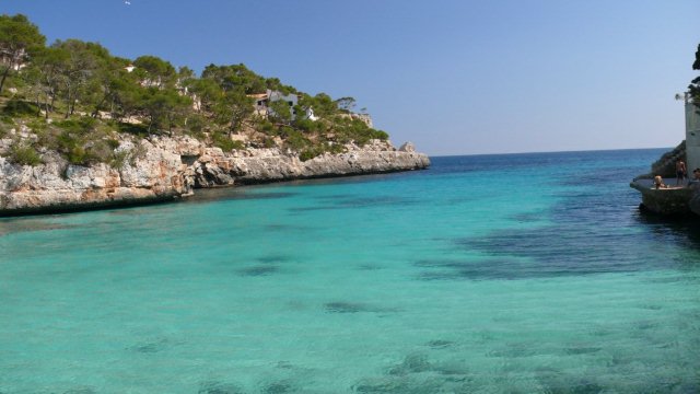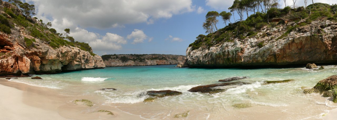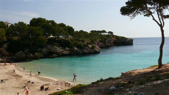 | Endlich ist am heutigen Morgen das Wetter perfekt. Außer einigen kleinen Wölkchen, welche die Sonne nach kurzer Zeit aufgezehrt hat, strahlt die Sonne von einem azurblauen Himmel. So starten wir gleich nach dem Frühstück zur Cala S' Almonia, wo wir gegen 10:00 Uhr eintreffen und diesen Paradiesstrand anfangs ganz für uns allein haben. Auch wenn sich der Strand mit der Zeit mehr füllt so erleben wir hier bei besten Wetter einen herrlichen Badetag zum Ende unseres Urlaubes. Gegen 15:00 Uhr starten wir und fahren nur wenige Kilometer weiter zur Cala Santanyi. Auch diese Bucht liegt herrlich, wenngleich sie im Gegensatz zur Cala S' Almonia von einigen Hotels flankiert wird. Wiederum nur wenige Kilometer weiter erreichen wir Cala Figuera, den Fischereihafen im Südosten der Insel. Hier bummeln wir an der Doppelbucht entlang der Fischerboote. Via Cala d' Or fahren wir am Abend wieder zurück zur Roqueta und erleben einen tollen Sonnenuntergang auf unserer Terrasse. | |||