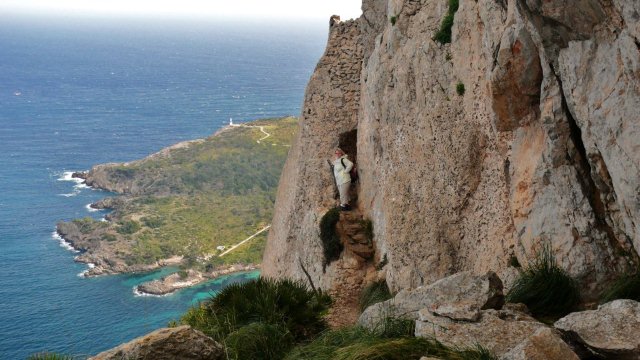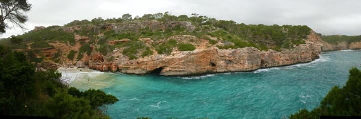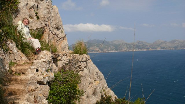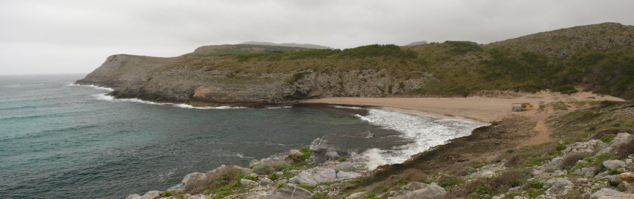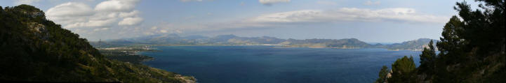 | Anfangs sind auch heute früh viele dunkel Wolken, vor allem im Westen der Insel zu sehen. Da es im Norden weniger grau erscheint fahren wir über Platja de Muro und Port de Alcudia nach Es Mal Pas zur Ermita de la Victoria. Hier starten wir zu unserer Wanderung zur Penya Rotja. Anfangs durch Kiefernwald und später teilweise in luftiger Höhe entlang der Bucht von Pollenca erreichen wir die Spitze der Halbinsel. Der Weg hierher führt an manchen Stellen auf schmalen Weg, nur gesichert von Ketten, an der Felswand entlang, so dass er nichts für nicht schwindelfreie Wanderer ist. Von hier aus bietet sich ein hervorragender Blick auf die Halbinsel Formentor. Eine kurze Kletterpartie führt uns noch einige Höhenmeter weiter auf den Gipfel hinauf, wo eine alte Kanone (...wie auch immer die hier nach oben gekommen ist) steht. Hier bietet sich in südlicher Richtung auch noch zusätzlich der Blick nach Port de Alcudia und den Strand von Platja de Muro. Nach kurzem Biwak steigen wir wieder hinunter und wir nehmen den gleichen Weg zurück. Nach einer reichlichen Stunde Fahrt erreichen wir dann die Cala Mondrago im Südosten der Insel. Nach einer kurzen Pause fahren wir weiter nach Süden und erreichen nach kurzer Fahrt die Cala S' Almonia. Da es inzwischen meist sonnig ist nutzen wir die Gelegenheit und erfrischen uns im ca. 16°C kühlen Mittelmeer. Immer wieder begeistert uns die Natur rund um die Bucht. Auf dem Rückweg machen wir noch einen kurzen Stopp an der Cala Llombards. Dann fahren wir zurück in "unsere" Finca und essen auf unserer Terrasse zu Abend und genießen die warme Sonne. | |||