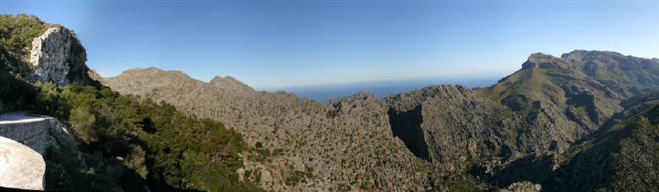 | Heute früh ist es deutlich milder als gestern. Nachdem wir bei unserer Ankunft gestern nur ca. 6°C hatten, genießen wir heute laue 15°C schon am frühen Morgen. Nach einem ausgiebigen Frühstück starten wir heute Morgen via Sineu, Inca entlang der Autobahn nach Valldemossa. Am Ortsrand parken wir den Mietwagen und steigen durch Steineichenwälder hinauf zum "Reitweg des Erzherzogs". Schon während des Aufstieges haben wir immer wieder tolle Ausblicke hinüber zum Galatzo, dem höchsten Berg im Südwesten Mallorcas. Der weitere Weg führt uns direkt auf einem Kamm entlang, wo wir tolle Ausblicke zur einen Seite nach Palma und die Pla und zur anderen Seite zur Westküste haben. Winzig klein liegt Sa Foradada, der "Lochfelsen" unterhalb des Landgutes Son Marroig vor uns. Nachdem es beim Aufstieg annähernd windstill war werden wir hier oben fast vom Kamm gepustet. Trotzdem haben wir ein Super-Panorama hinüber zum Puig Major und hinunter nach Deja. Der Weg führt uns wieder zurück hinunter nach Valldemossa. Von hier aus fahren wir hinunter zum Port de Valldemossa. Die Straße ist recht eng und einige Mietwagenpiloten vor uns drehen um. Nach einigen Gekurbel erreichen wir die Küstensiedlung und relaxen einige Zeit am Kieselstrand vor pittoresker Kulisse. Anschließend geht es wieder bergan und wir fahren entlang der Tramuntana-Straße via Deja, Soller, den Stauseen zum Kloster Lluc und von da weiter über Inca und Sa Pobla an die nördliche Küste bei Can Picafort. Von hier geht es dann zurück zur Finca Roqueta. Auch am Abend ist es sehr mild bei ca. 19°C auch wenn sich hohe Schleierwolken vor die Sonne geschoben haben, was wir nutzen und noch lange auf der Terrasse sitzen. | |||