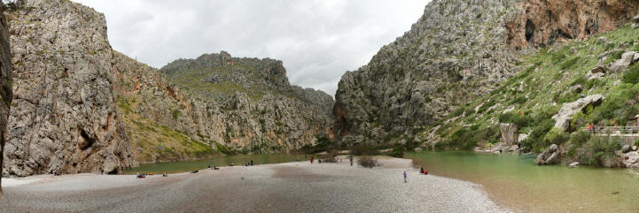 | Heute Morgen während des Frühstücks regnet es in Strömen. Glücklicherweise hört der Regen auf und so fahren wir durch den Soller-Tunnel in den Westen der Insel nach Biniaraix. Hier starten wir unsere Wanderung durch den Cami des Barranc. Das ist das "untere" Teilstück des Abstiegs der Wanderung vom Cuber-Stausee hinunter nach Soller. Da es logistisch immer schwierig ist eine solche Streckenwanderung zu machen haben wir diese in zwei Etappen geteilt. Am Ostermontag haben wir den "oberen" Teil vom Cuber-Stausse zum L' Ofre absolviert und heute sind wir eine Etage tiefer. Auch der untere Teil hat seinen Reiz und der Weg führt auf einem gepflasterten Weg durch einen wasserreichen Barranco. Nach dem Erreichen der Hochebene Can Siller gehen wir den Weg noch eine Weile weiter doch da sich die Wolken inzwischen bedenklich schwarz färben und der Wind auffrischt drehen wir um und kehren zurück. Dann fahren wir nur kurze Zeit und erreichen Fornalutx, eines der schönsten Orte ganz Spaniens. Wir gehen durch die engen Gassen und entdecken viele sehenswerte Ecken. Weiter fahren wir zum Far Cap Gros bei Port de Soller. Hier haben wir das ultimative Panorama über die Bucht von Port de Soller und die dahinter liegenden Gipfel der Tramanutana, auch wenn sich die Berge heute meist in Wolken gehüllt haben. Über die Tramuntana-Straße fahren wir weiter und biegen ab hinunter zur Sa Calobra. Die Straßen windet sich in vielen Serpentinen hinunter zum Meer. Problematisch sind neben den vielen Radfahrern, welche scheinbar diese Straße für sich gemietet haben, die unsicheren Mietwagenpiloten, welche ängstlich hinter dem Steuer sitzen und diese Strecke lieber nicht fahren sollten. Unten angekommen finden wir nur auf dem "bewirtschafteten" Parkplatz eine Abstellmöglichkeit und erleben die erste Parkmöglichkeit, wo die Kosten in Minuten (0,0436 EUR/Minute!!) ausgewiesen werden. Das klingt nach Touriabzocke und das ist es dann auch, da man die tatsächlichen Parkminuten dann sehr subjektiv und nach Gutdünken interpretiert. Trotzdem ist der Kurzspaziergang zur Mündung des Torrent de Parreis lohnenswert. Im Torrent ist wegen der Regenfälle der letzten Tage viel Wasser, so dass man selbst auf den normalen Weg den Barranco nicht erreicht. Nur mit einer kurzen Klettereinlage kann man den Torrent de Parreis erreichen. Zurück am Auto fahren wir via Lluc und Inca zurück in die Finca Roqueta. | |||