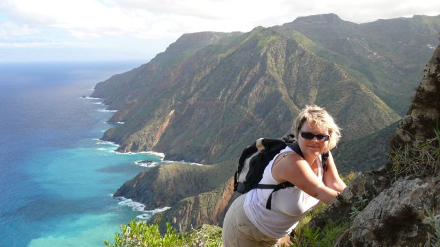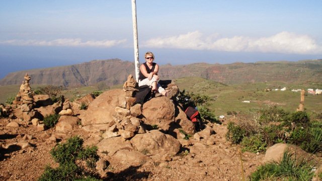 | Auch heute beginnt der Tag mit Sonnenschein. Schon bei unserem obligatorischen Terrassenfrühstück lugt die Sonnen um den Tequergenche herum. Also fahren wir via Arure hinauf nach Chipude wo wir kurz hinter dem Abzweig nach Erque das Auto parken und uns von nördlicher Seite der Fortaleza nähern. Den ursprünglichen Anmarschweg von Pavon, welcher etwas kürzer ist, haben wir abgewählt, da der Weg aufgrund von Bauarbeiten sehr schlammig ist. Bald schon stehen wir am Fuß der Fortaleza und beginnen den Aufstieg hinauf auf den Tafelberg. Seit letztem Jahr sind zwar einige Stufen angebracht worden doch trotzdem erfordert der Aufstieg volle Konzentration und man muss an vielen Stellen schon die Hände zu Hilfe nehmen. Nach den ersten Steilstück geht es dann noch über Felsformationen, wo man ziemlich kraxeln muss waagerecht zum Gipfel entlang. Dann ist das Gipfelplateau erreicht und man kann entspannt bis zum markanten Gipfelkreuz wandern. Hier hat man ein tolles Panorama über die Insel. Am Horizont sehen wir das erste mal seit Tagen ein paar Wolken aufziehen, welche sich bei Arure über den Kamm schieben. Der Blick reicht vom Valle Gran Rey bis zum Garajonay. La Palma ist nur schemenhaft zu erkennen und El Hierro hat sich im Dunst versteckt. Auf dem gleichen Weg geht es wieder hinunter vom Gipfel und zurück zum Auto. Bevor wir in den Süden weiterfahren machen wir noch einen kleinen Abstecher auf der engen Straße nach Erque. Diese führt eng in endlosen Kurven den Barranco hinunter. Obwohl diese bestens asphaltiert ist drehen wir nach ein paar Kilometern um da die Straße voller Steine ist und hier immer wieder Steinschlag von oben auf die Straße poltert. Via Alajero fahren wir nach Playa Santiago an die Playa del Medio wo wir den Nachmittag bei angenehmer Sonne verbringen. Zurück im Valle Gran Rey erleben wir den Sonnenuntergang heute mal an der Puntilla. | ||||