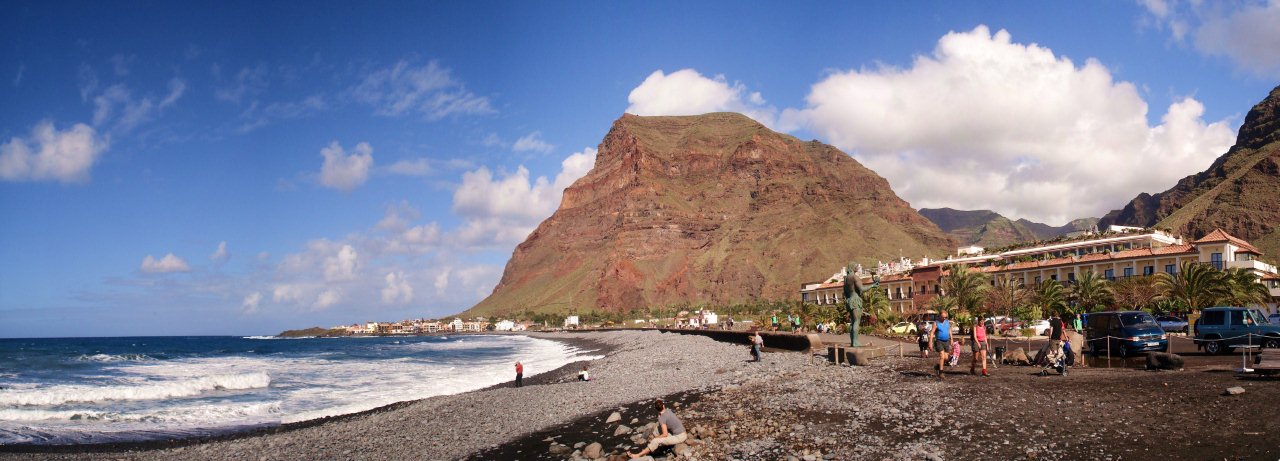 | Fahrt via Alojera ins Palmendorf Taguluche, Playa Guariñen, Vallehermoso, Las Rosas zur Playa del Medio bei Playa Santiago | ||||