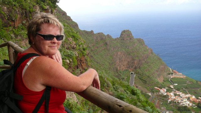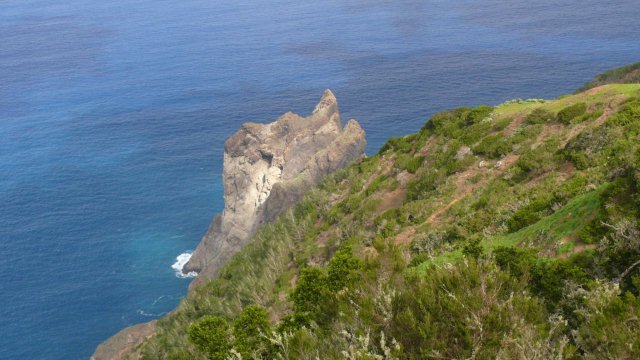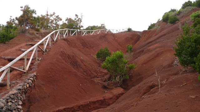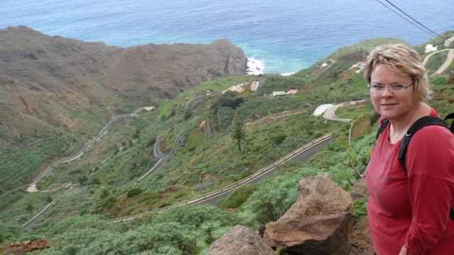 | Nach dem Frühstück starten wir mit dem Mietwagen wie immer in den letzten Tagen in Richtung Arure. Wir haben für die heutige Wanderung mehrere Optionen und fahren erst einmal hinunter nach Vallehermoso. Erstmals seit Tagen erleben wir die Höhenstraße im Nebel. Da auch die Wolken das Tal von Vallehermoso bedecken fahren wir die Küstenstraße weiter bis Agulo. Hier ist das Wetter besser und auch der Teide auf Teneriffa zeigt sich deutlicher als in den letzten Tagen. So beschließen wir den Aufstieg durch die Rote Wand von Agulo hinauf nach Juego de Bolas anzugehen. Unten am Einstieg zur Steilwand meint man, dass es unmöglich ist da hinauf zu gelangen. Dem entsprechend geht der Weg auch extrem steil bergan und man pustet schon ganz schön bei jedem Schritt. Der Weg ist insgesamt ziemlich "luftig" und man sollte schon schwindelfrei sein. Auch ist der schmale Pfad an einigen Stellen von Steinschlag in Mitleidenschaft gezogen aber trotzdem niemals kritisch. Nach ca. 45 Minuten stehen wir dann oben an einem kleinen Mirador von wo aus wir ein tolles Panorama hinunter nach Agulo und hinüber nach Teneriffa haben. Bald passieren wir ein kleines Hochtal um kurze Zeit später das von Erosion stark gezeichnete Gebiet von Juego de Bolas zu erreichen. Die Erde hat hier eine markante rote Farbe welche der darunter liegenden Felswand von Agulo auch den Namen gegeben hat. Kurz vor dem Centro de Visitantes biegen wir auf einem markierten Weg ab welcher uns wieder hinunter nach Agulo bringt. Leider hat sich La Palma, welches man sonst von hier oben sehen kann, in den Wolken versteckt. Viele Serpentinen später erreichen wir die Küstenstraße und kurz danach wieder den Ort Agulo. Via Hermigua und El Cedro fahren wir entlang der Höhenstraße zurück ins Valle Gran Rey, wo auch heute Abend der Sonnenuntergang bei Maria auf dem Programm steht. | ||||
