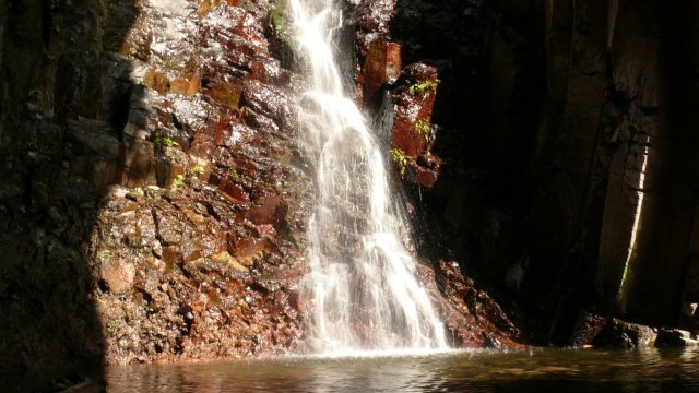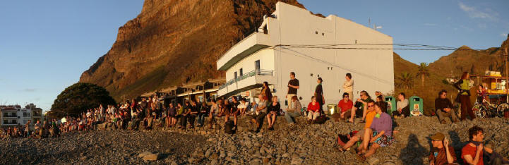 | Heute fällt das Frühstück auf der sonnigen Terrasse besonders lang aus. Da unsere heutige Tour direkt im Valle Gran Rey startet sind wir nicht auf den Bus angewiesen sondern brechen etwas später als sonst auf. Der Weg führt uns über La Puntilla und La Calera hinauf nach El Guro. In diesem alternativ und deutsch geprägten "Künstlerdorf" beginnt die Wanderung zum Salto de Agua mit einem steilen Aufstieg über viele Treppen, welche aufgrund der Hanglage zu erklimmen sind. Dann führt der Weg erst vorbei an einigen Häuschen und mündet dann in alten Terrassenfelder. Hier stehen viele hohe kanarische Palmen ebenso wie Wolfsmilchgewächse und Opuntien. Schon kurz nach El Guro kommt eine kurze Kraxelpassage an der wir zum Barrancogrund hinabsteigen. Der weitere Weg führt meist im Barranco weiter bis auf ein paar Stellen wo der Weg das Tal kurz verlässt. Der Weg ist bewachsen mit dichten Bambus und Cyperngras und man hat schon etwas "Urwaldfeeling". In diesem Jahr fließt hier mehr Wasser als sonst und so queren wir ständig das Bachbett, um nach einer 3/4-Stunde am Ende des Tales am Wasserfall anzukommen. Hier machen wir eine kurze Rast und zurück geht es auf dem gleichen Weg. Am Nachmittag relaxen wir noch etwas um am Abend wie fast immer an der Playa den Sonnenuntergang zu erleben. Dieser ist heute ein lupenreiner Touchdown und die Sonnen versinkt direkt im Meer. | ||||