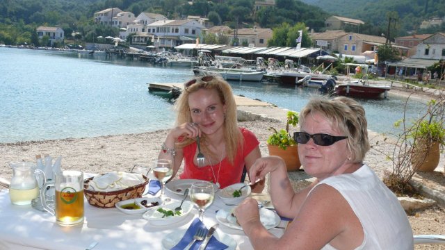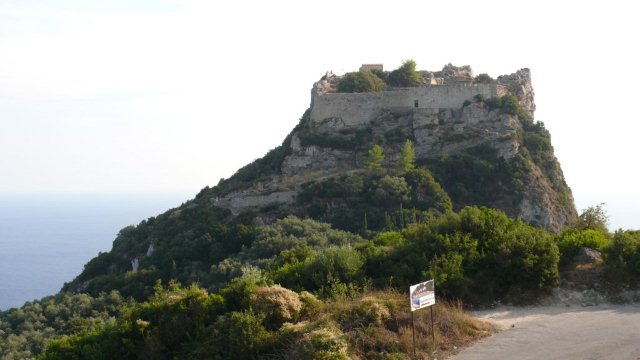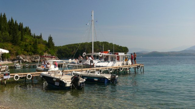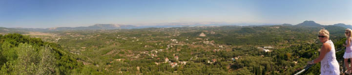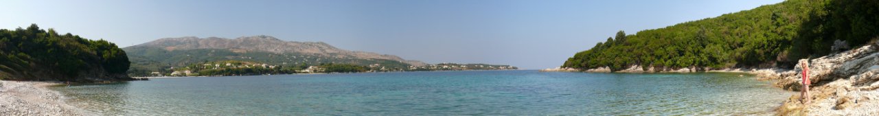 | Unser Tag beginnt gegen 08:00 Uhr mit einem erfrischen Bad im Meer, welches unmittelbar vor unserer Haustüre liegt. Nach dem Frühstück brechen wir auf und fahren nach Paleokastritsa. Der Ort liegt an mehreren kleinen Felsbuchten und die größte Sehenswürdigkeit ist das Kloster, welches auf einem Hügel am Ende des Ortes liegt. Eine enge Straße führt nach oben und wird heute von vielen Reisebussen frequentiert, da in Kerkyra ein großer Kreuzfahrer der Princess Line liegt. So schauen wir uns nur kurz das Kloster an und fahren schnell wieder hinunter. Via Lakones, Makrades fahren wir die Panoramastrecke in den Inselnorden. An einer Passstraße liegt Agios Georgios wie auf einer Modelleisenbahn unter uns. Kurze Zeit später fahren wir unten an diesem Strand entlang. Vorbei an Afionas fahren wir am Strand von Arillas entlang, um dann wieder auf einer steilen Straße (30%-Steigung!) hinüber nach Agios Stefanos (...nicht das von gestern, sondern das an der Nordwestküste) zu fahren. Hier machen wir einen längeren Badestopp am langen Sandstrand vor einer imposanten Felsenkulisse. Am späten Nachmittag fahren wir dann fast auf dem gleichen Weg zurück. Bei Makrades biegen wir noch kurz nach Krini zum dortigen Angelokastro ab. Leider ist das nur bis 15:00 Uhr geöffnet, so dass wir es nicht besichtigen können. Am Abend fahren wir noch hinunter zum Strand von Paramonas, wo wir, wie bereits bei unseren ersten Aufenthalt vor 5 Jahren, lecker in der Taverne "Plochi" essen. | ||||
