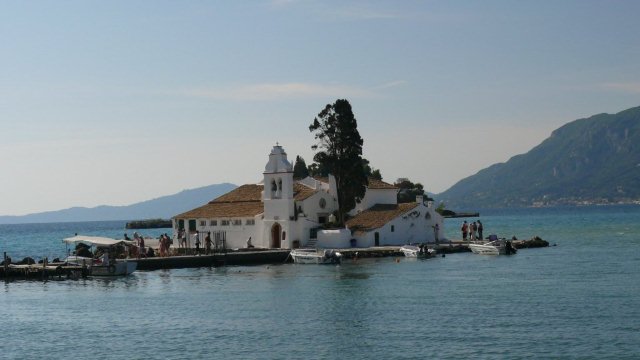 | Kanoni-Halbinsel - Vlacherna-Kloster mit Mäuseinsel - Kerkyra (Korfu-Stadt) - Pelekas (Kaisers Thron) - Paramonas | ||||