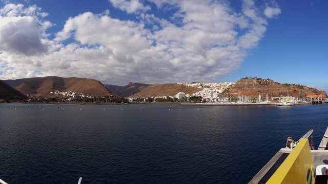| Gegen 04:00 Uhr brechen wir in Richtung Flughafen Dresden-Klotzsche auf wo wir kurz vor 05:00 Uhr eintreffen. Ausnahmsweise pünktlich startet unser Flieger zuerst in Richtung Gran Canaria, wo wir zwischenlanden. Kurze Zeit später geht es dann weiter nach Teneriffa, wo wir ca. 12:30 Uhr eintreffen. So schaffen wir gerade noch die 14:00 Uhr-Fähre, welche uns hinüber nach San Sebastian de la Gomera bringt. Nach einer Stunde Busfahrt erreichen wir dann endlich das Valle Gran Rey und beziehen unser Quartier im Appartement Baja del Secreto. Nach einer Erfrischung schlendern wir in Richtung Vueltas, wo wir in unserem "Stammrestaurant", dem Abisinia zu Abend essen. | ||