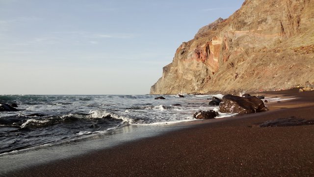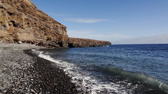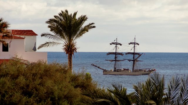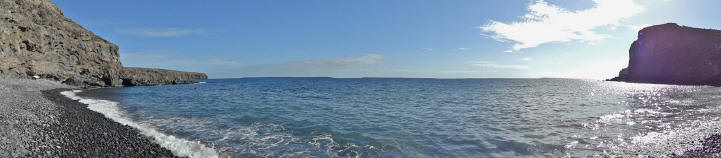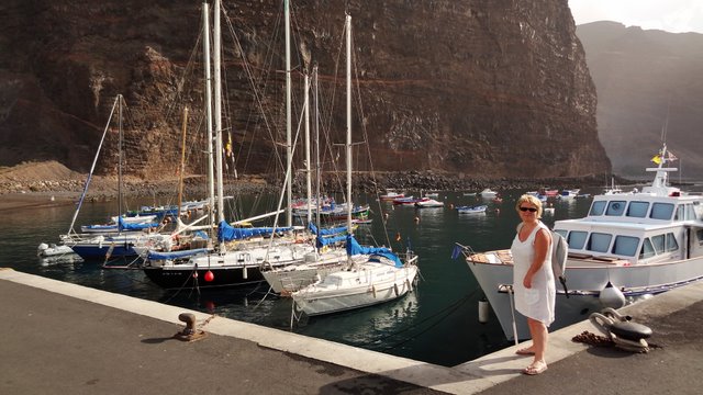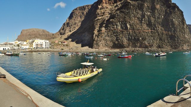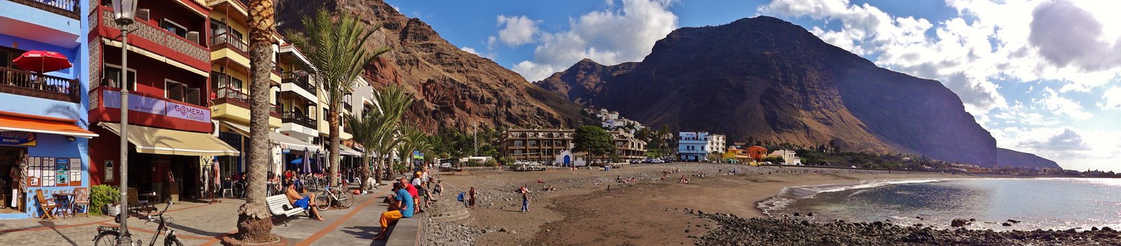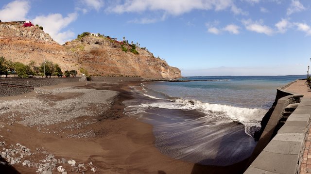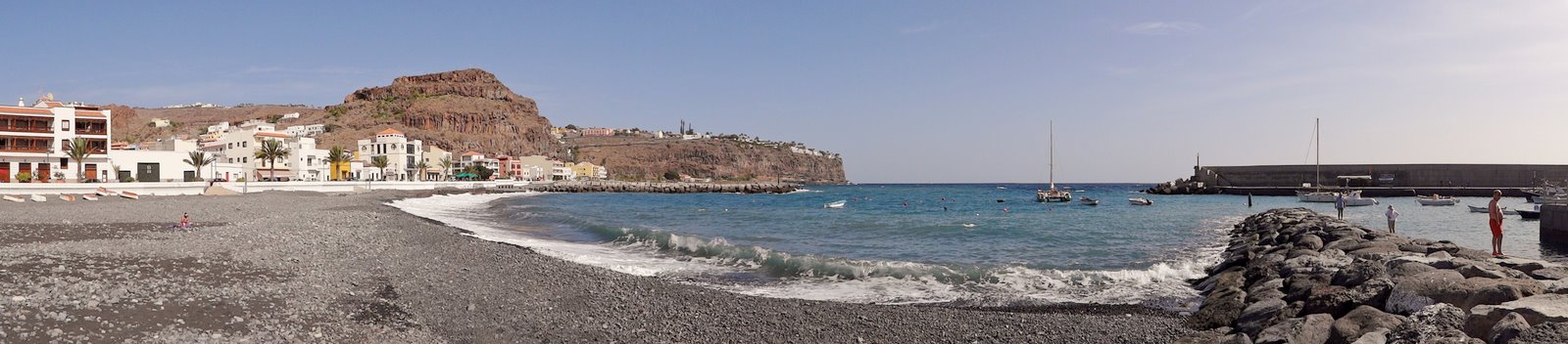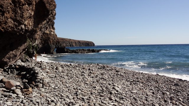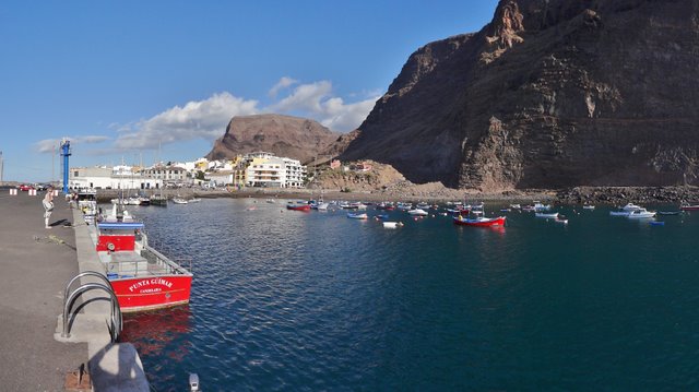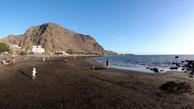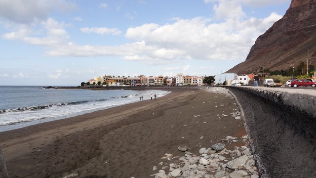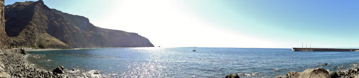 | Nach unserer gestrigen Abstiegswanderung nach Vallehermoso mit anschließender großen Inselrundfahrt lassen wir es heute mal wieder etwas ruhiger angehen. So klingelt heute kein Wecker und wir genießen beim Frühstück die Morgensonne auf unserer Terrasse. Dann bummeln wir via Vueltas an die Playa Argaga. Im Hafen von Vueltas liegt der schwedischer Drei-Mast-Segler Alva, welchen wir noch unter vollen Seglern zum Frühstück von unserer Terrasse aus haben einlaufen sehen. An der Playa Argaga ist wie immer kein Krümel Sand zu finden sondern nur großen Steine. Trotzdem hat diese Ecke auch ihren Reiz, wenngleich man nicht immer die Möglichkeit zum Baden hat. Dann ziehen wir uns an den Pool zurück und lassen es uns gut gehen. Am späten Nachmittag geht es dann nach La Playa zum Sonnenuntergang. Im Colorado in La Playa speisen wir vorzüglich und lassen so den Tag ausklingen. | ||