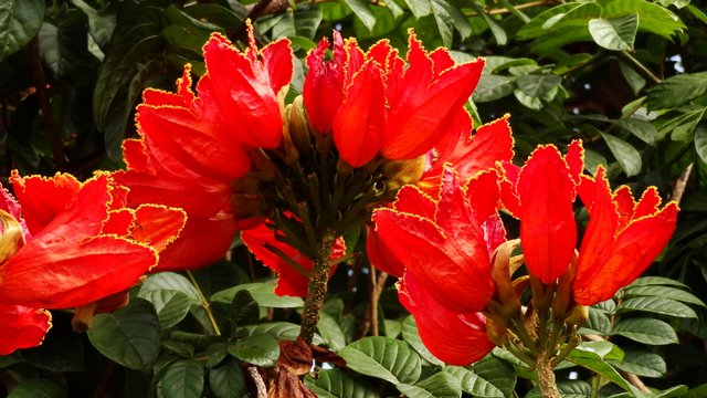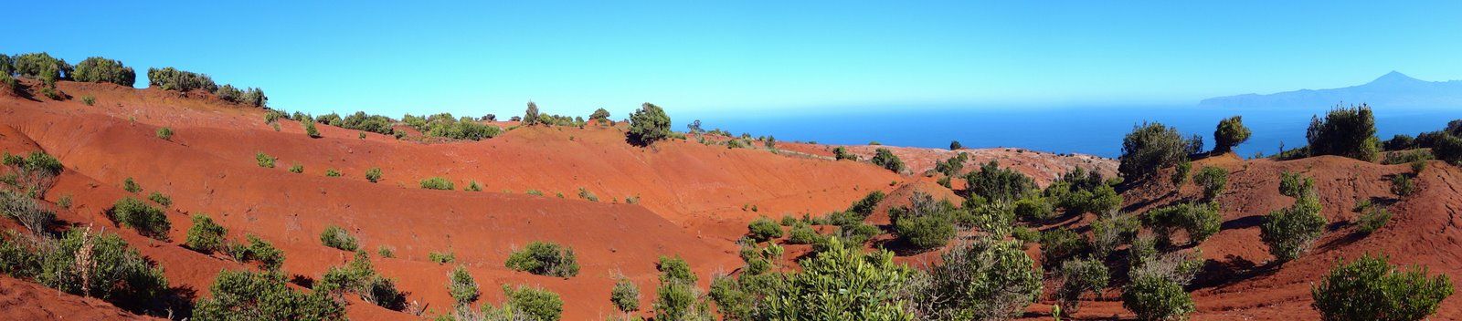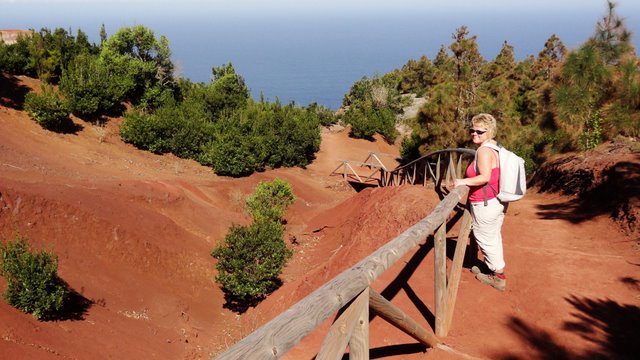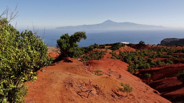 | Auch heute ist absolutes "Kaiserwetter" und keine Wolke ist am Himmel. Daher entschließen wir uns zu einer aussichtsreichen Paradetour von La Gomera, den Aufstieg durch die Rote Wand bei Agulo. Dort treffen wir nach ca. 1 Stunde Fahrt ein und steigen gleich in die steile Wand ein. Das erste Stück ist mit steilen Treppen, später wird der Weg dann naturbelassener doch wir kennen ihn noch als ausgetretenen Geröllpfad und nunmehr ist schon vieles verbessert worden. Nach ca. 45 Minuten stehen wir oben in der Wand in genießen nicht nur den phantastischen Blick hinunter nach Agulo sondern auch hinüber nach Teneriffa und zum Teide. Dann führt der Weg durch ein Hochtal zum Mirador de Arabate, wo gerade ein Aussichtspunkt hinbetoniert wird. Hier oben sieht man die Kraft der Erosion denn das Gelände ist voll rotem Lehm, in dem viele Rinnen hinein gewaschen wurden. Da es heute trocken ist können wir im Gegensatz zu einigen früheren Besuchen gut laufen und haben keine Lehmklumpen an den Wanderschuhen. Bald erreichen wir die Wegekreuzung kurz vorm Centro de Visitantes, dem Besucherzentrum des Nationalparks. Hier beginnt unser Wiederabstieg hinunter nach Agulo während dessen wir immer wieder die andere Nachbarinsel La Palma sehen. Auch dieses Teilstück ist saniert worden und so können wir gut nach unten absteigen. Nach Querung der Inselstraße geht der Weg um einen Felsen herum und führt zurück nach Agulo. Via Hermigua und El Cedro fahren wir auf der Höhenstraße zurück ins Valle Gran Rey, wo wir den üppigen Sand an der Playa und das tolle Wetter zu einem Bad im Atlantik nutzen. Am Abend findet hier noch der Umzug der Heiligen Drei Könige statt, welche per Autokorso durchs Valle fahren und mit Kamelle um sich werfen. Die Kinder versuchen dann noch ihre Wunschzettel zu platzieren, damit die 3 Herren heute Nacht möglichst viele und vor allem die richtigen Geschenke bringen. In Spanien gibt es die Weihnachtsgeschenke eben etwas anders und später als in Deutschland....;-) | ||